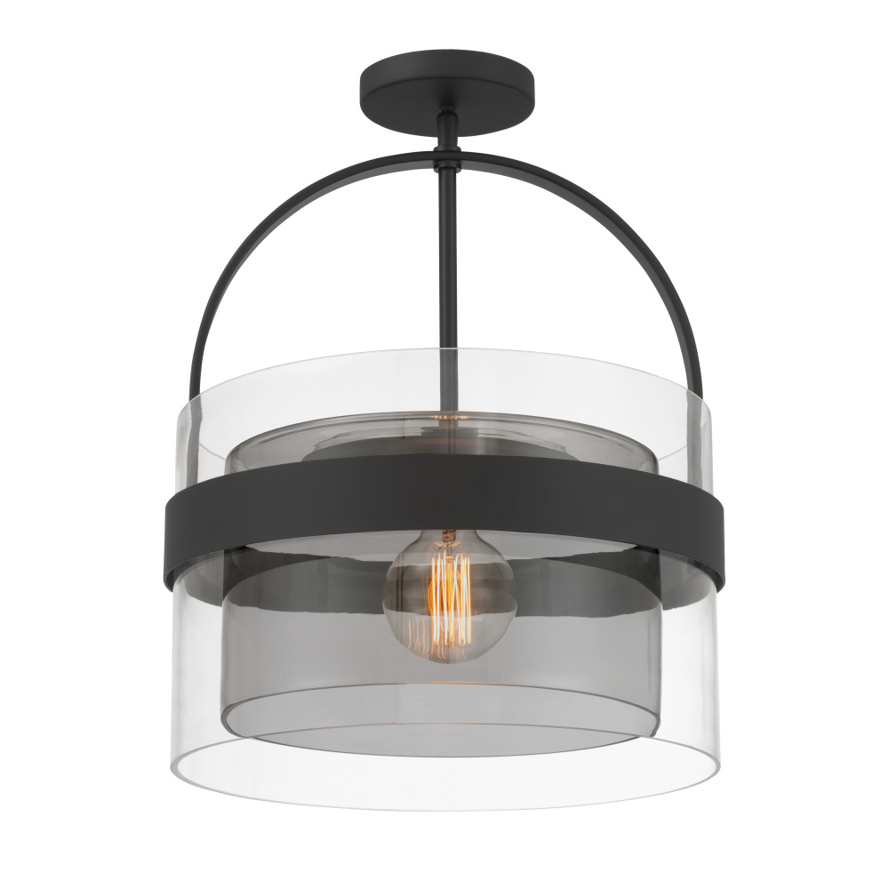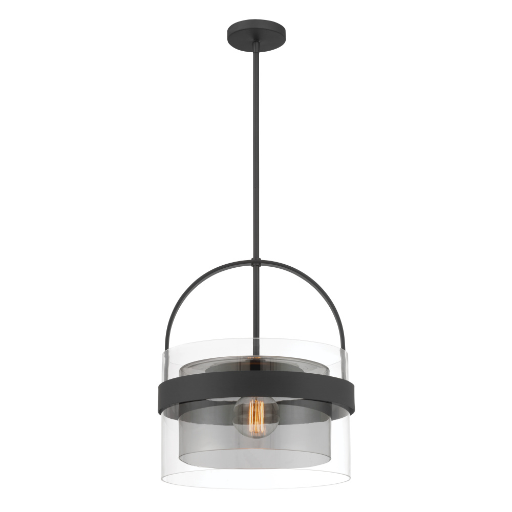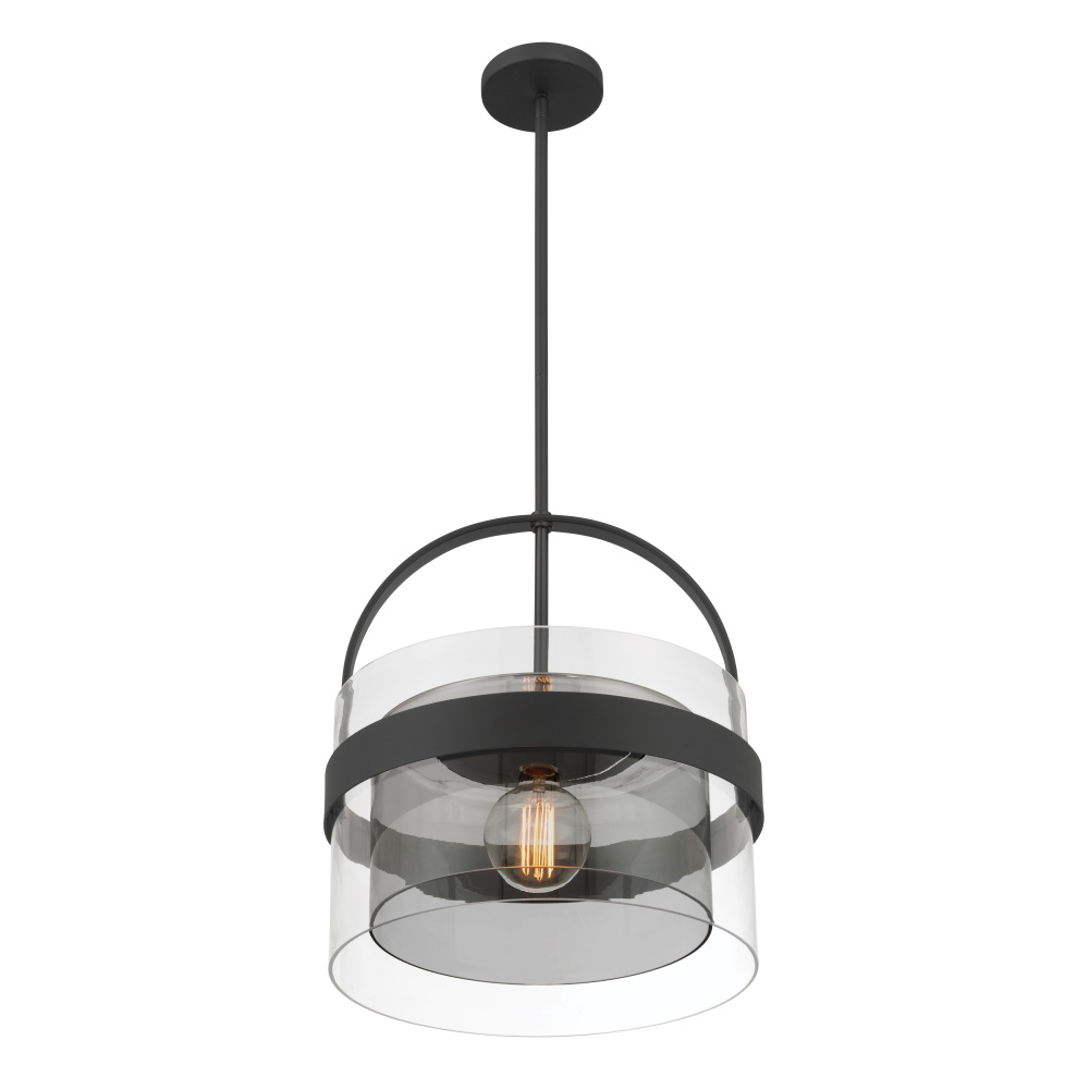 1-Light Convertible Pendant/Semi-Flush Mount - Dark Matte Black with Clear and Grey Glass