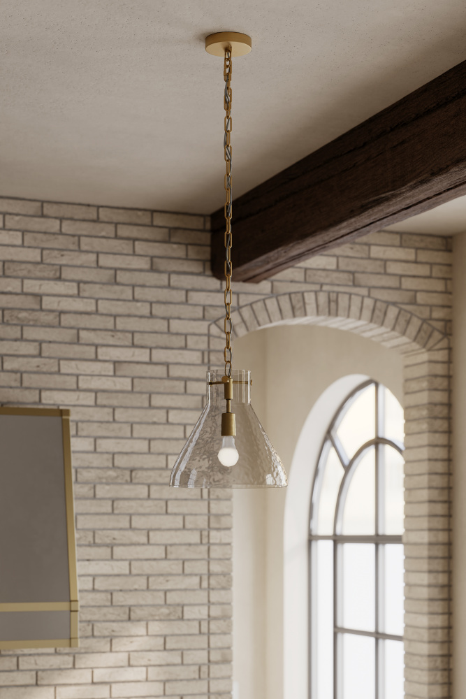 1-Light Pendant - Legacy Brass with Clear Water Glass