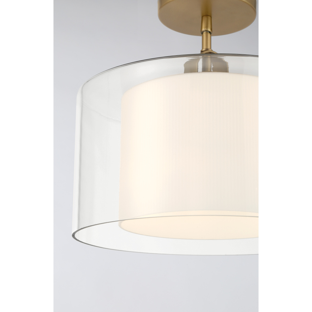 1-Light Convertible Pendant/Semi-Flush Mount - Legacy Brass with Clear and Etched Opal Glass