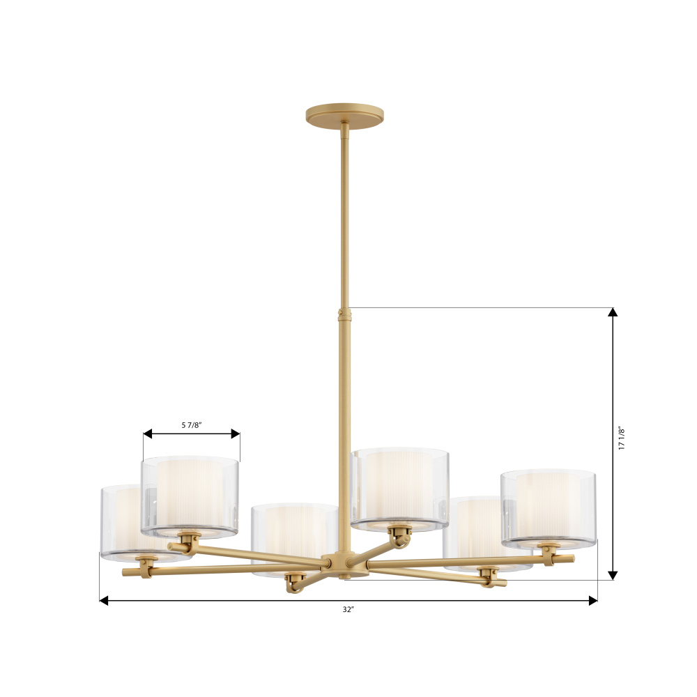 6-Light Chandelier - Legacy Brass with Clear and Etched Opal Glass