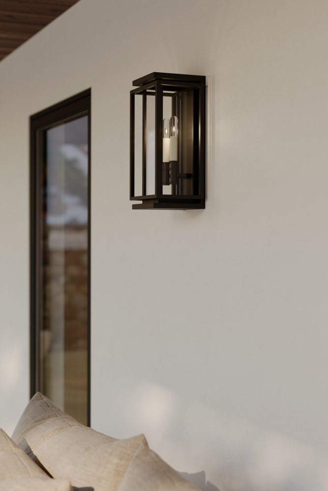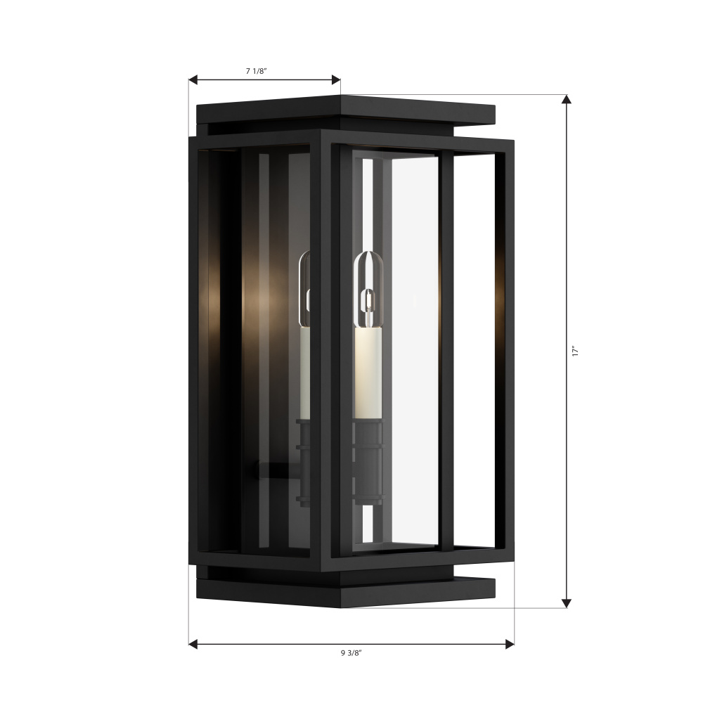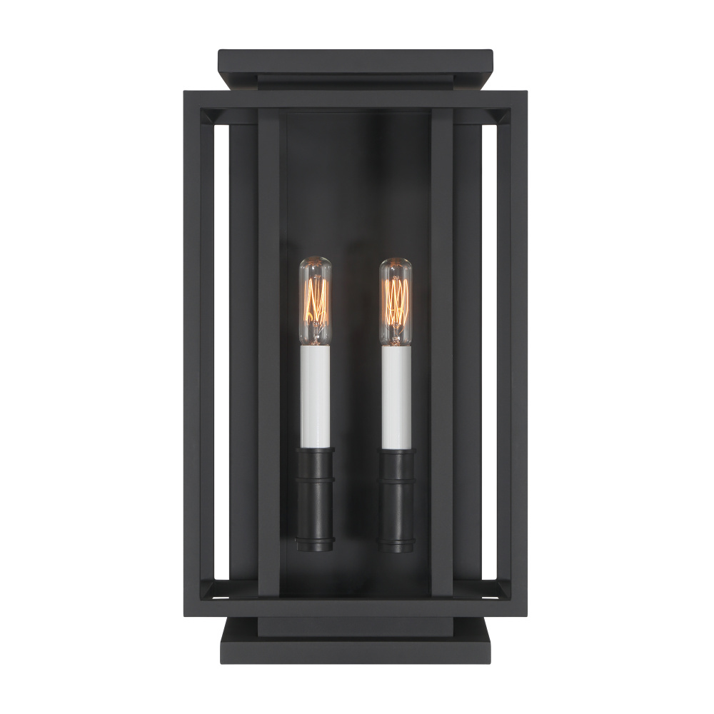 2-Light Outdoor Wall Sconce - Dark Matte Black and White with Clear glass