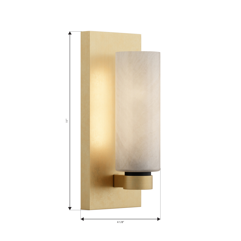 1-Light Wall Sconce - Legacy Brass and Dark Matte Black with Etched Alabaster Glass