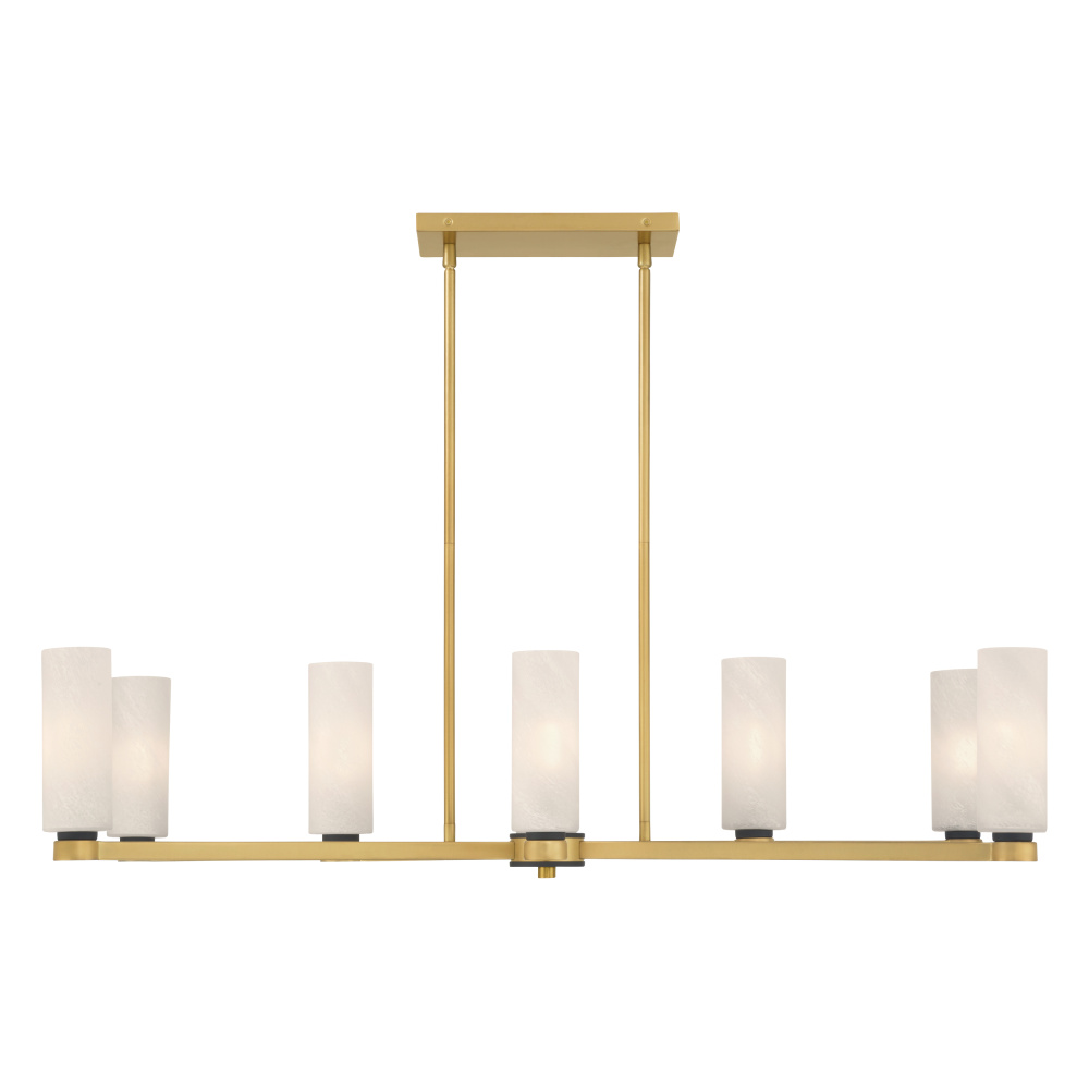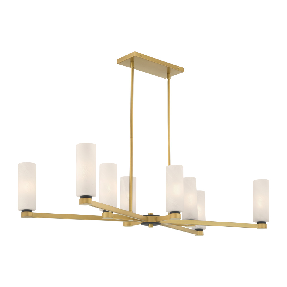 8-Light Linear Chandelier - Legacy Brass and Dark Matte Black with Etched Alabaster Glass