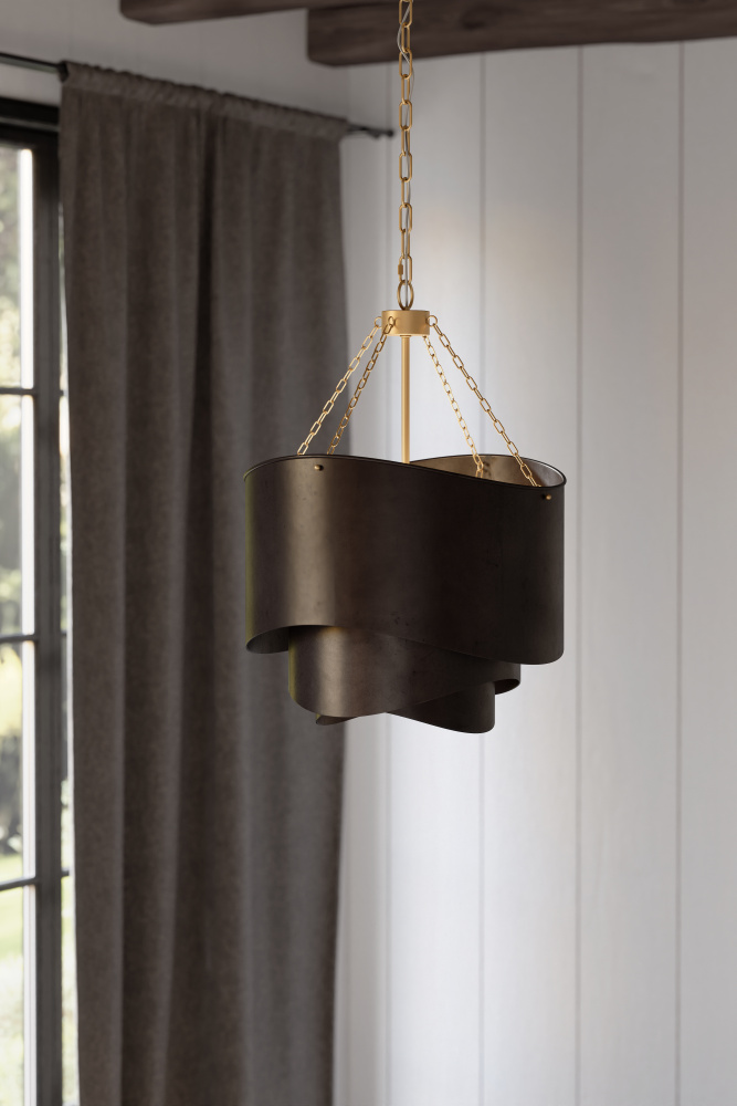 The Zyra pendant blends transitional lines with warm, inviting illumination.