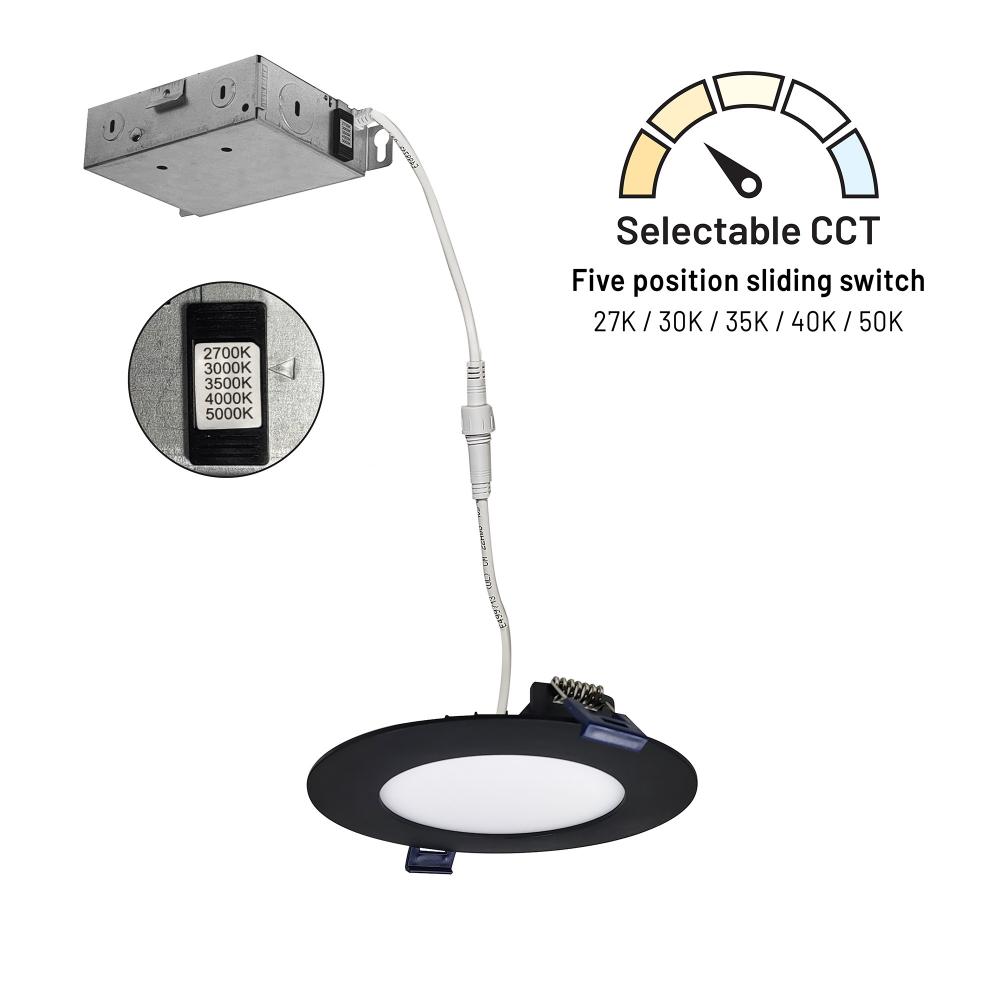 4" FLAT Non-Metallic Can-less LED Downlight, Selectable CCT, 700lm / 10W, Black finish