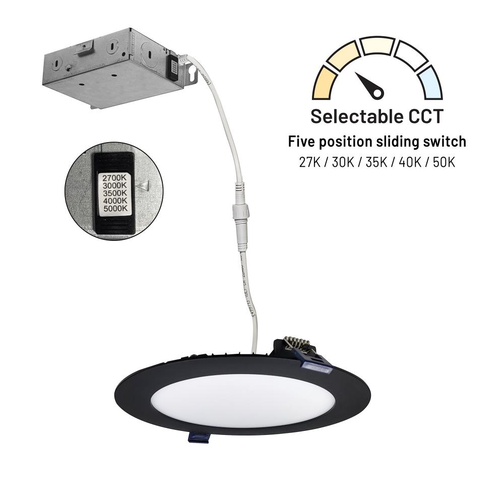 6" FLAT Non-Metallic Can-less LED Downlight, Selectable CCT, 1050lm / 13.5W, Black finish