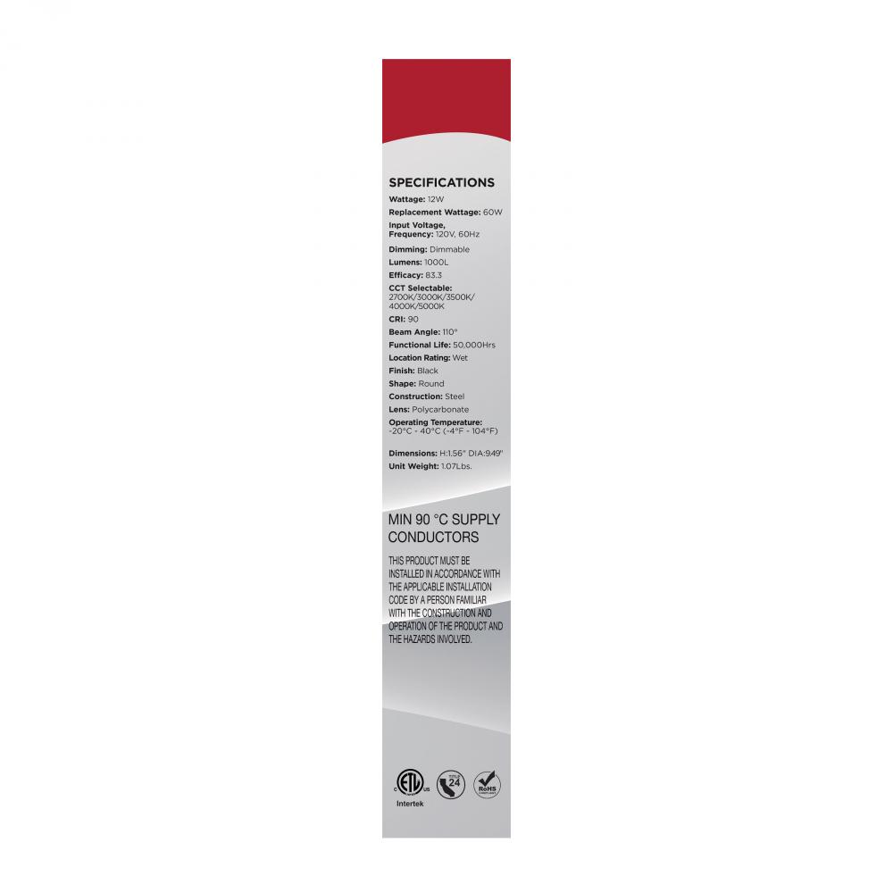 10 Inch LED Disk Light; 27K/3K/35K/4K/5K CCT Selectable; Black Finish