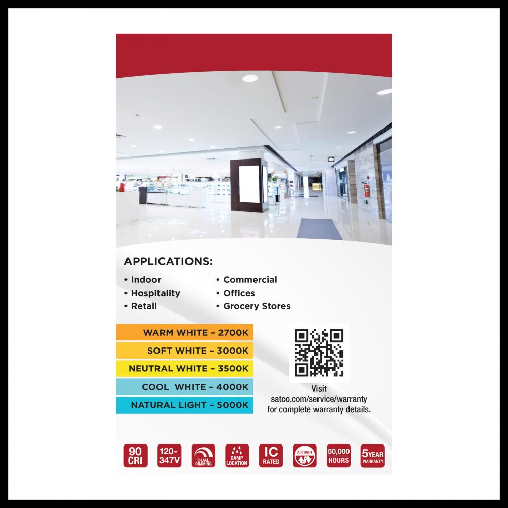 SATCO NUVO's Plus Series LED Commercial Downlight, S21600, delivers exceptional performance and versatility for today's remodel or new construction commercial environments. This 4-inch round fixture features field-selectable wattage and CCT setting