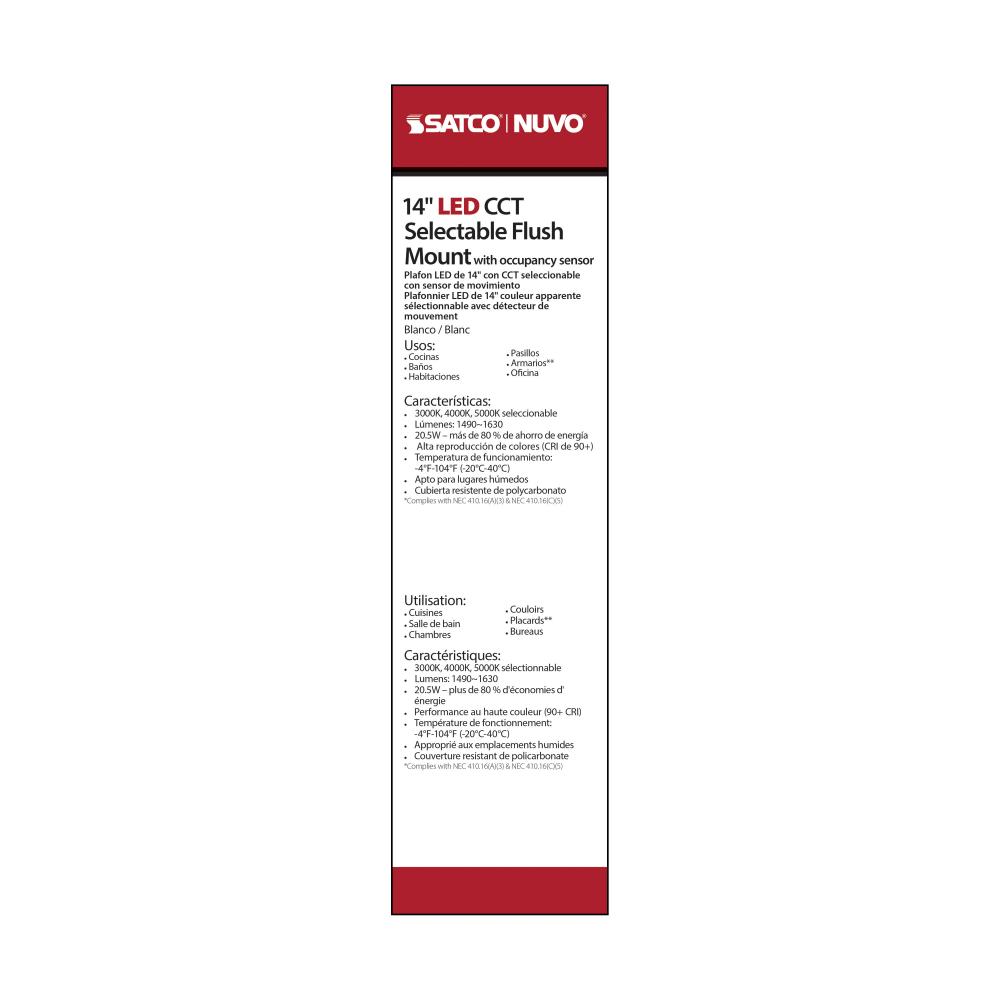 NUVO's 62-1217 LED Cloud fixture now features Satco's ColorQuick Selectable CCT technology and an integrated on/off microwave sensor versions for even more versatility. This 14 inch square option with a PMMA non-yellowing lens and a damp location r