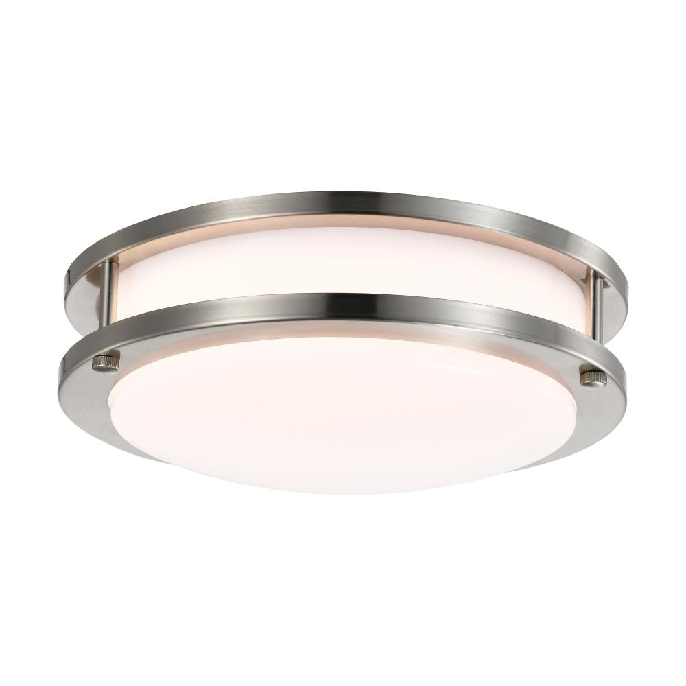 Satco's 16-watt, 10 inch flush mount fixture is a streamlined flush mount with contemporary styling. Add illumination to a dark hallway or foyer with this sleek and dimmable flush mount fixture. Finished in brushed nickel with a white lens, this fixtur