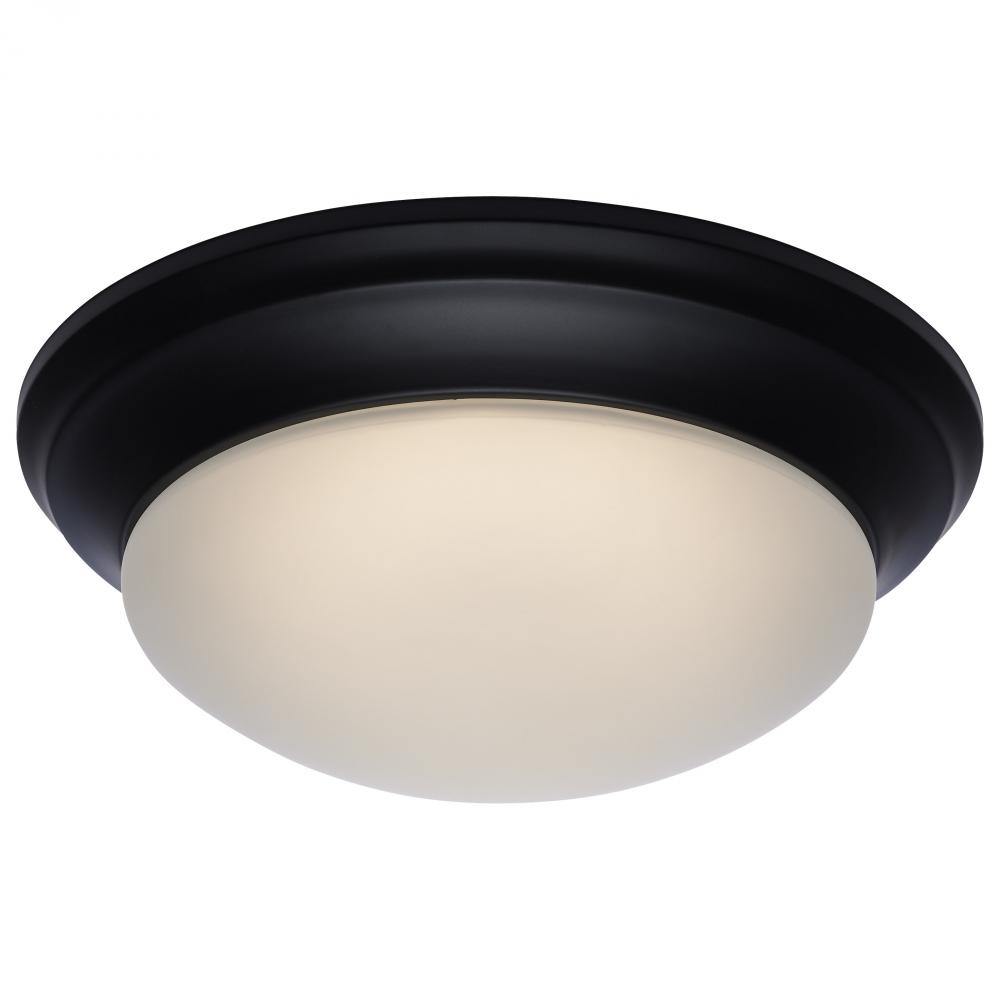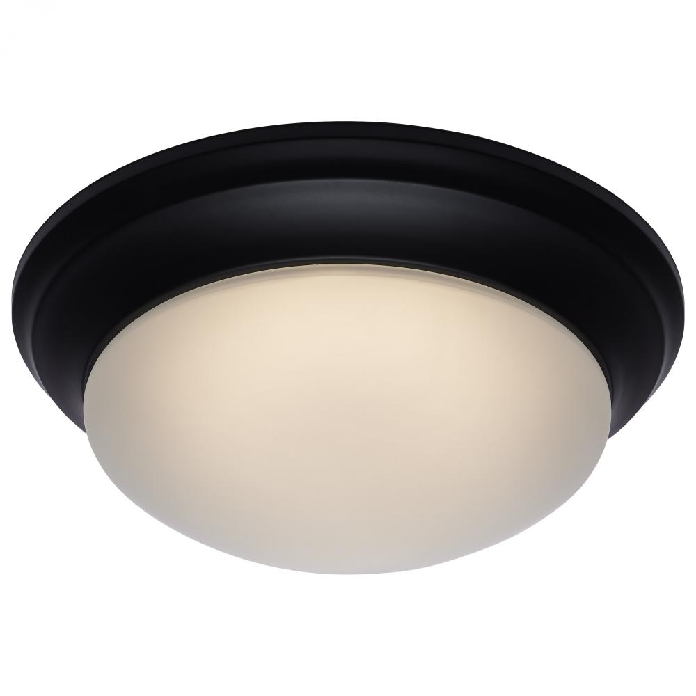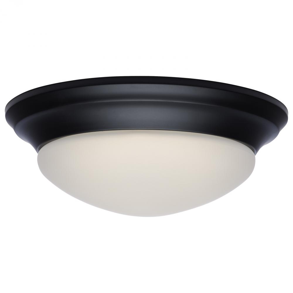 25W; Flush Mount Twist & Lock Fixture; LED; 14 in; Matte Black Finish; Frosted Glass