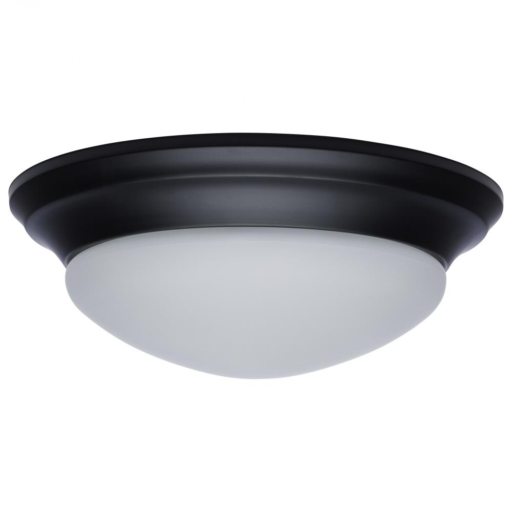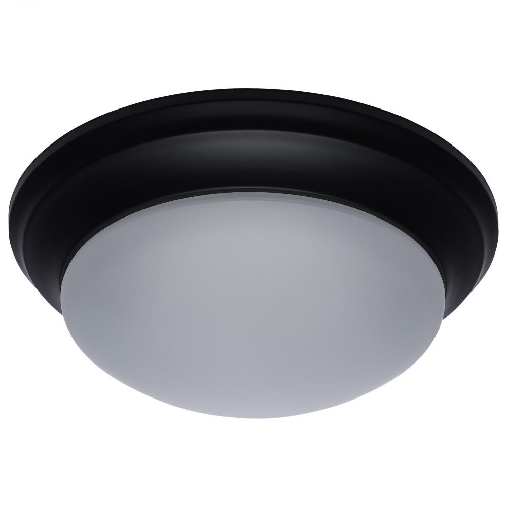 25W; Flush Mount Twist & Lock Fixture; LED; 14 in.; Matte Black Finish; Frosted Glass