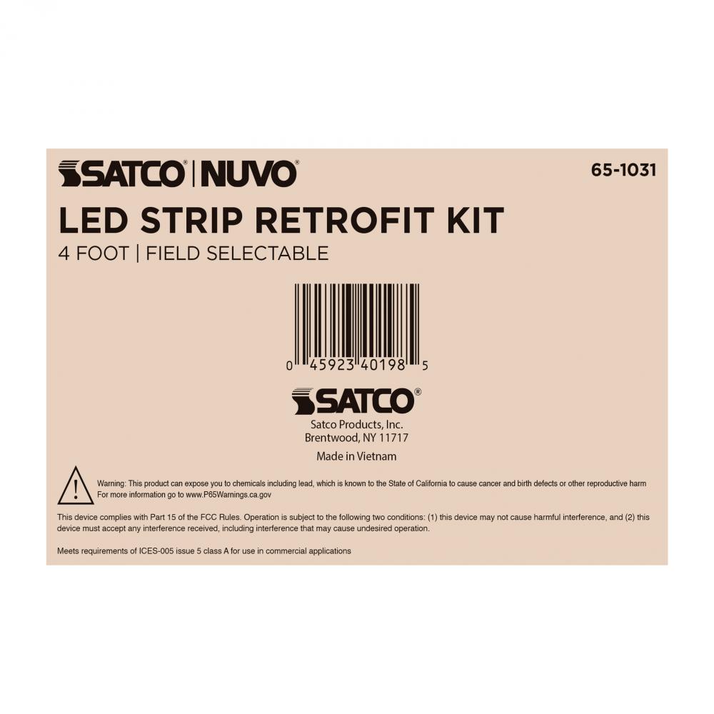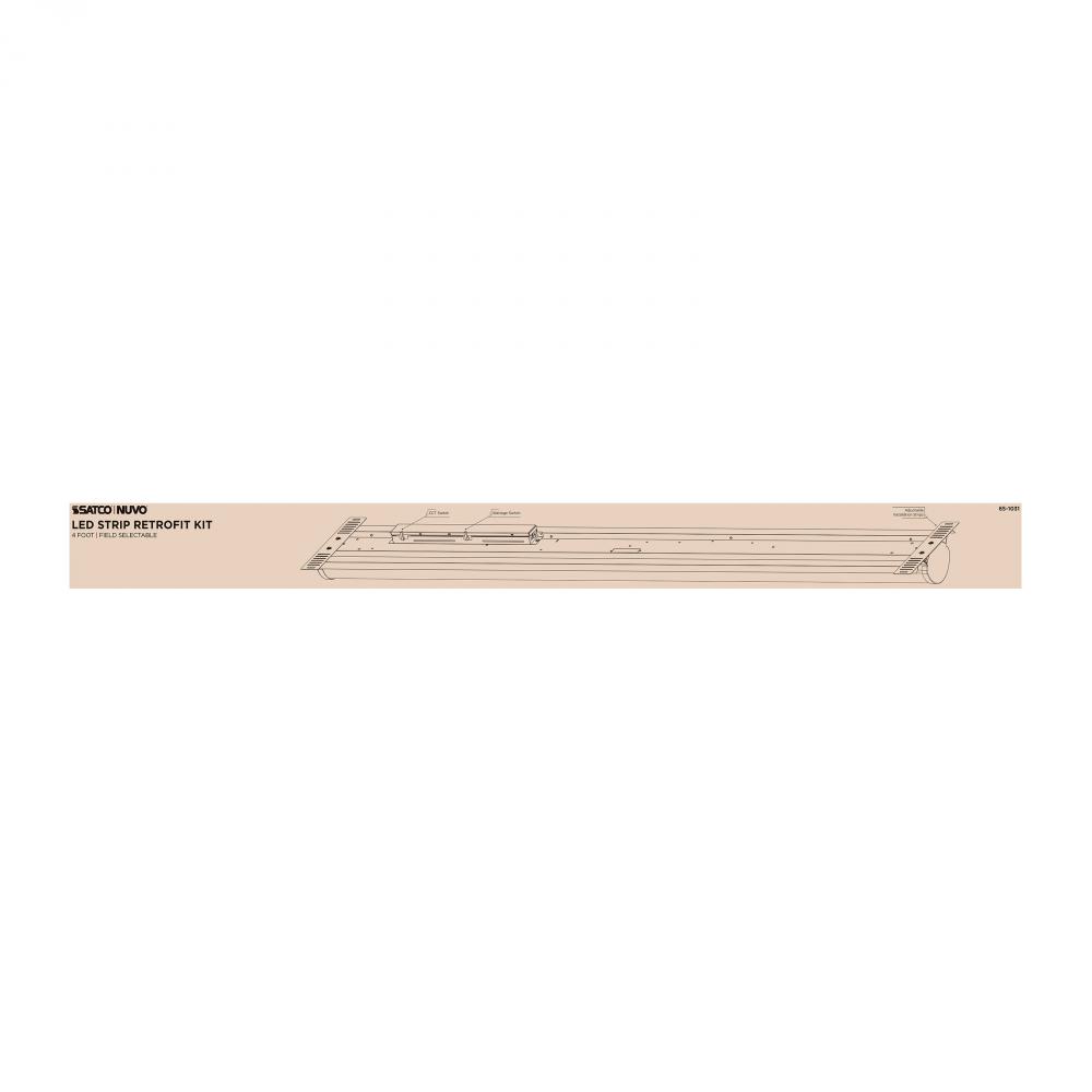 SATCO NUVO's LED Strip Retrofit Kit, 65-1031, is an energy-efficient upgrade for existing fluorescent fixtures. Designed with adjustable mounting strips to fit housings 2.75"–5.25" wide, this 4ft kit features field-selectable CCT and wattage,