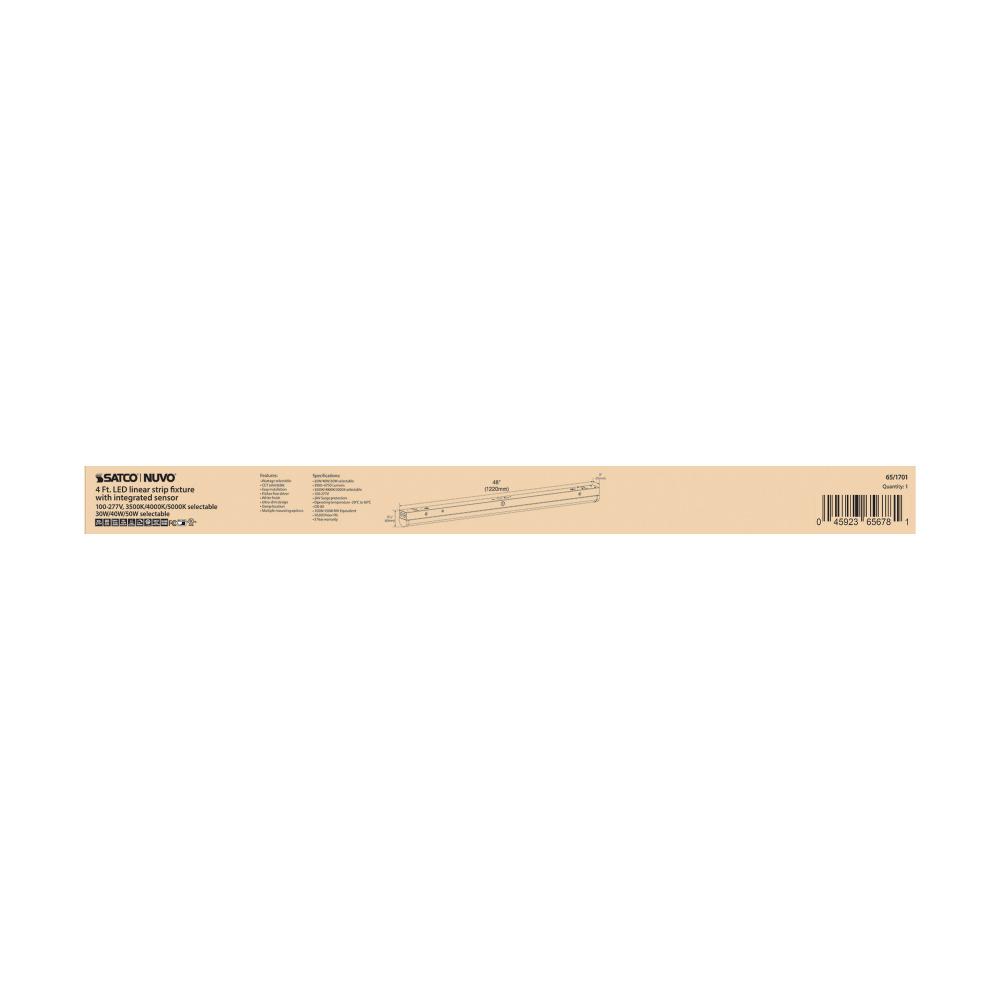 SATCO NUVO's 65-1701 4-foot LED Linear Strip Fixture offers adaptable lighting for diverse applications. This field-selectable fixture provides wattage options of 30W, 40W, or 50W and color temperature settings of 3500K, 4000K, or 5000K. With a univers