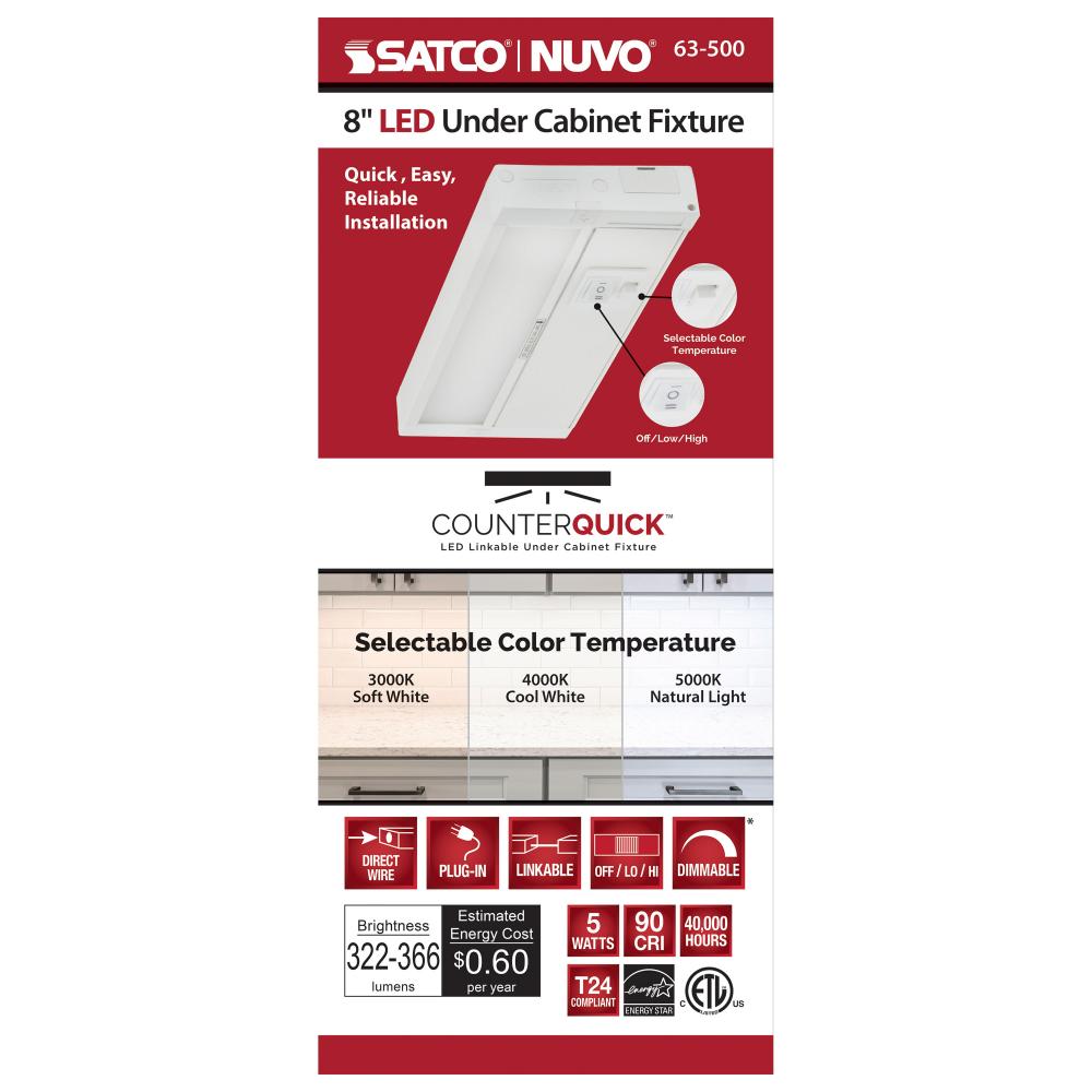 No matter how you hang it, install it, connect it, link it, wire it, or light it - the 63-500 8-inch White Counter QUICK LED under cabinet light is designed to help get the job done; with installation solutions that save on labor, quality, and durability t