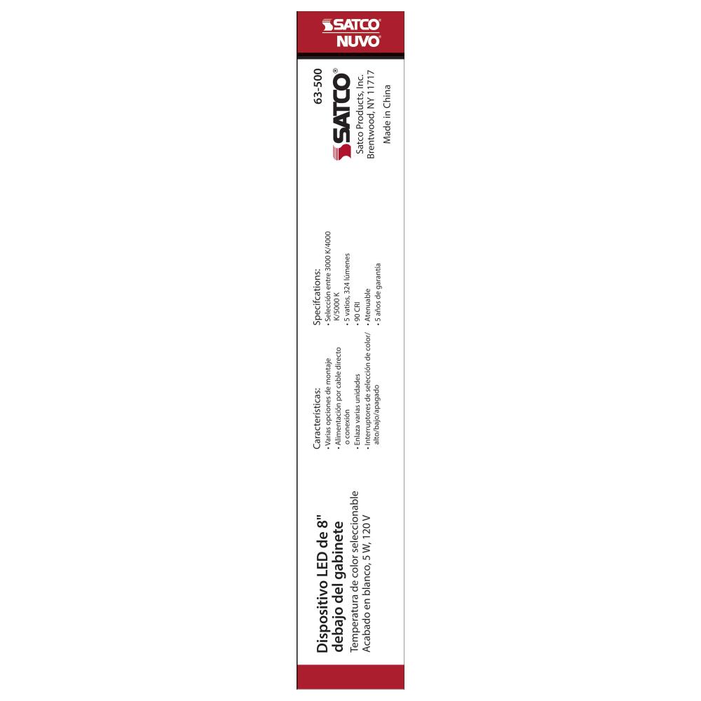 5 Watt; 8 Inch LED White Under Cabinet Light; CCT Selectable; 50000 Hours; White Finish