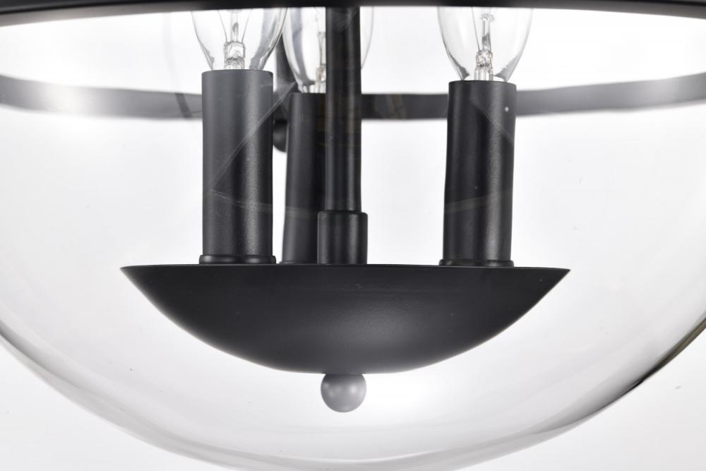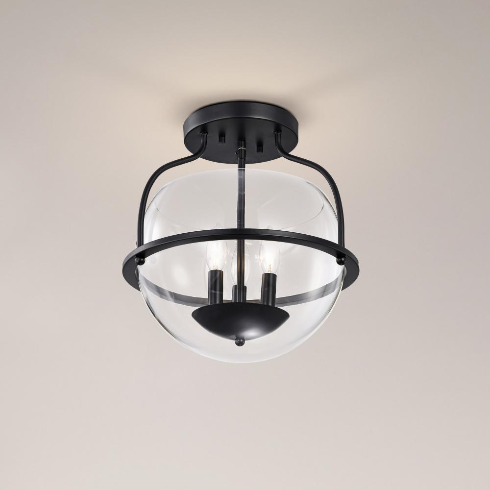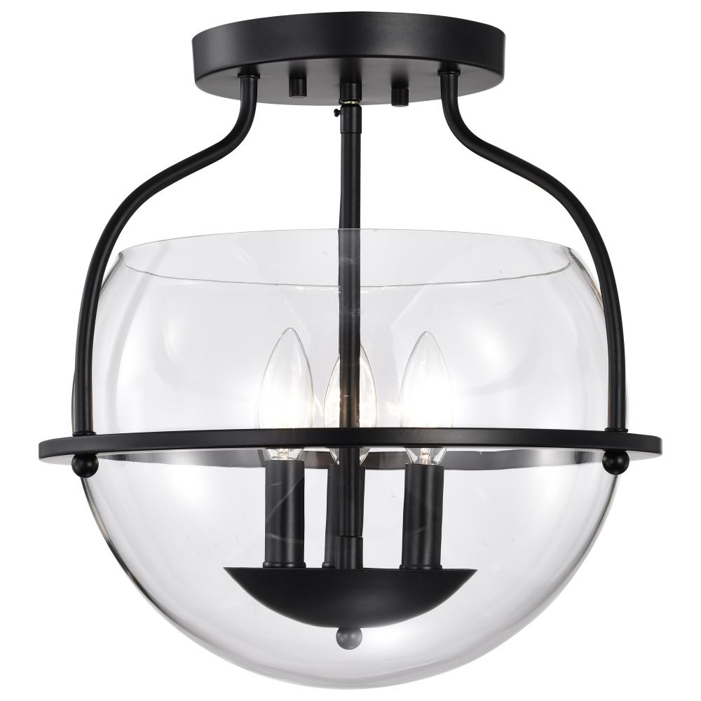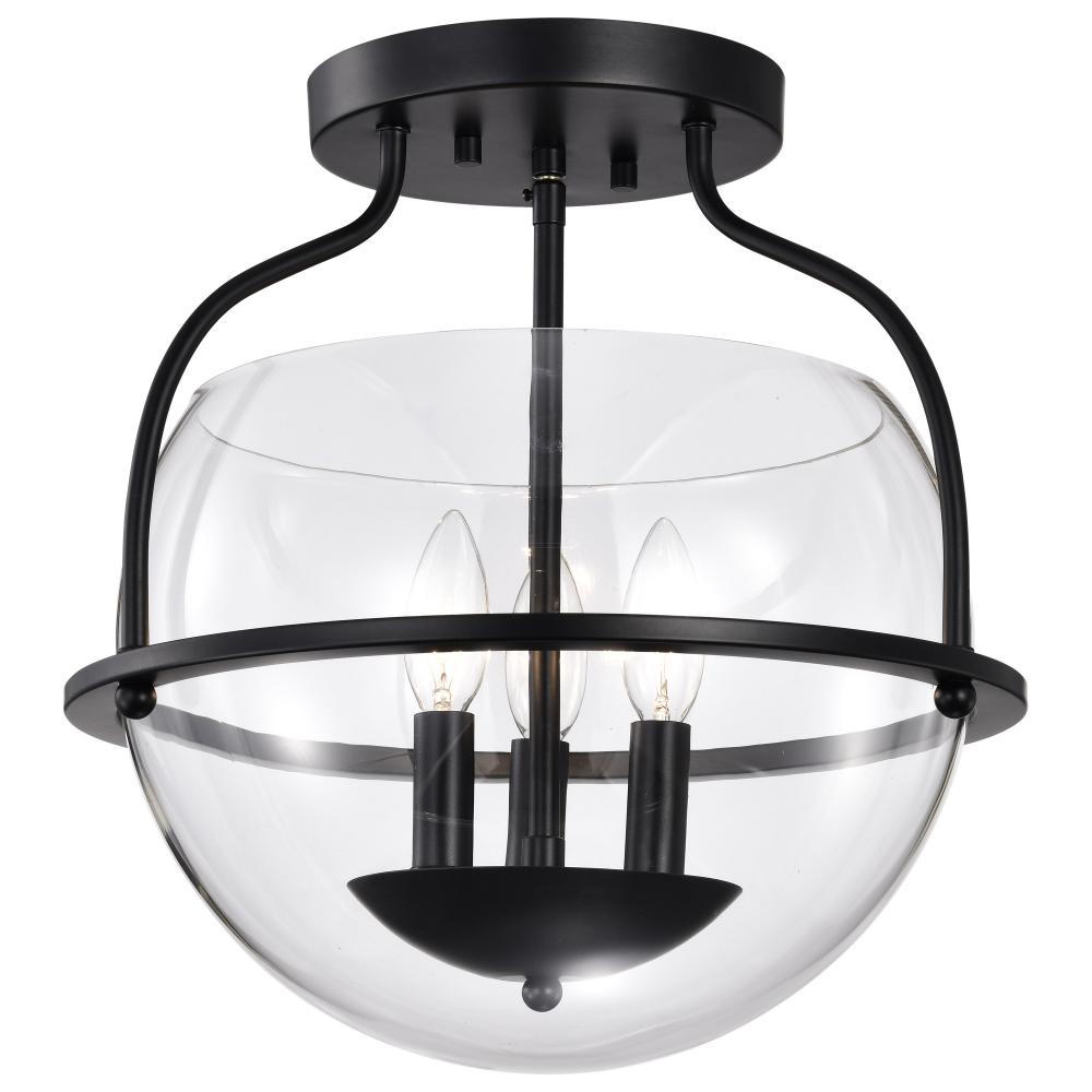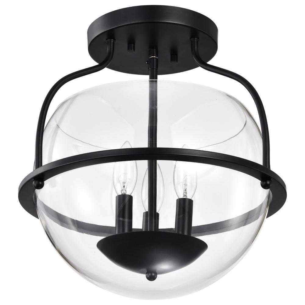 Amado 3 Light Semi Flush Mount; Matte Black Finish; Clear Glass