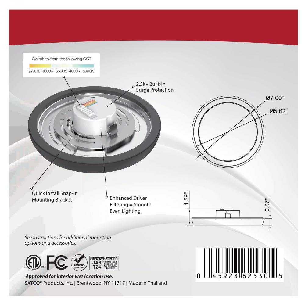 Visit Satco.com for optional accessories: 7 inch round extension collar; White - 25-1710, Black - 25-1711, Bronze - 25-1712