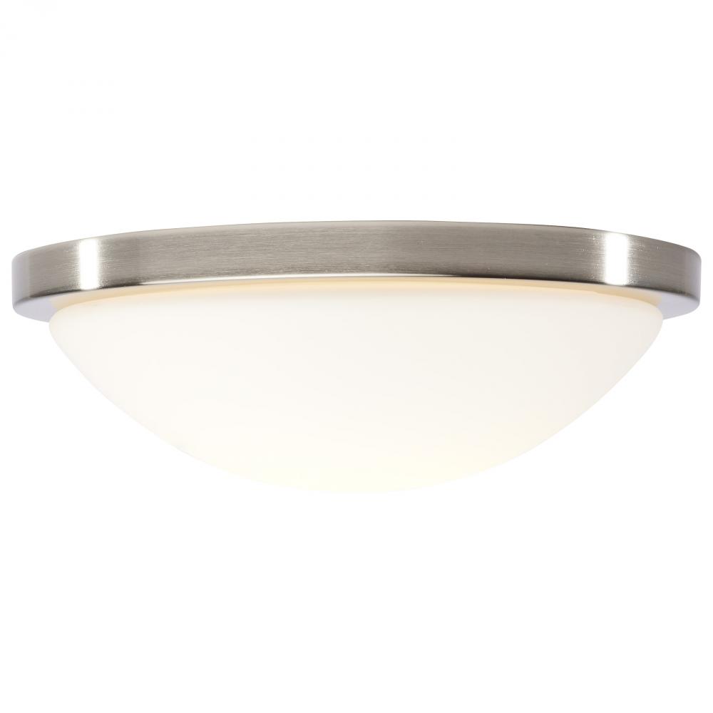 Button; 11 Inch LED Flush Mount Fixture; Brushed Nickel Finish; CCT Selectable; 120 Volts