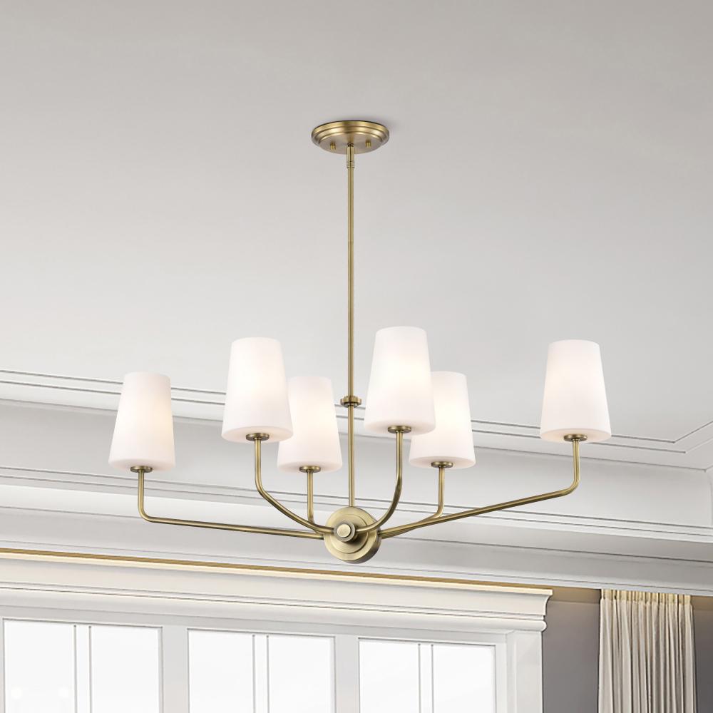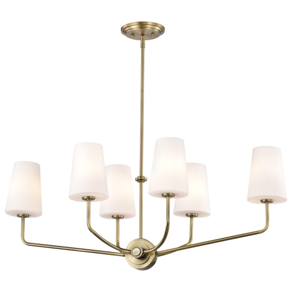 Cordello 6 Light Island Pendant; Vintage Brass Finish; Etched White Opal Glass