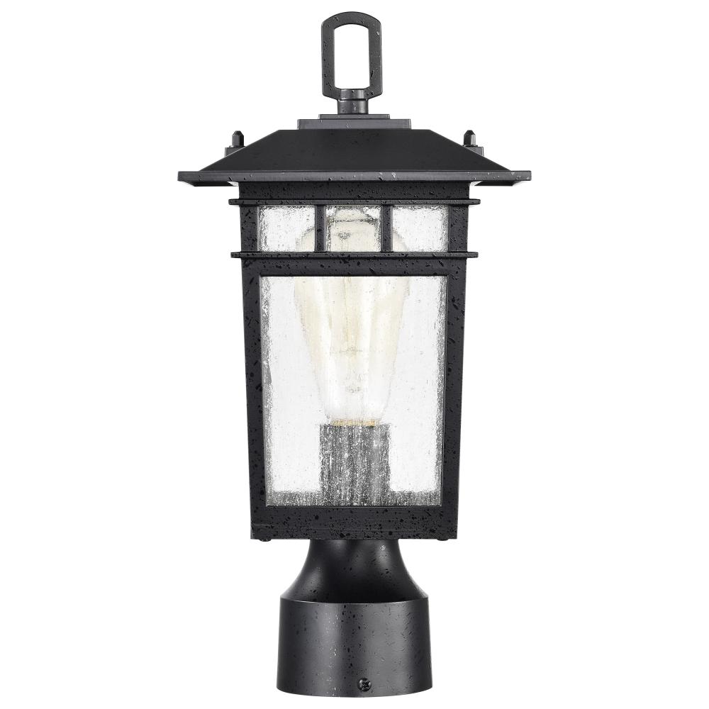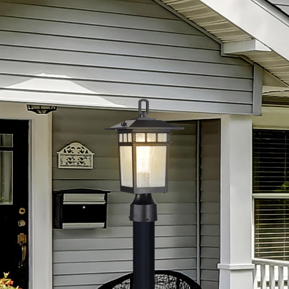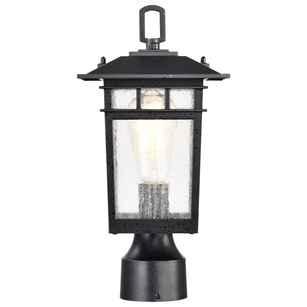 Cove Neck Collection Outdoor Medium 14 inch Post Light Pole Lantern; Textured Black Finish with Clear Seeded Glass