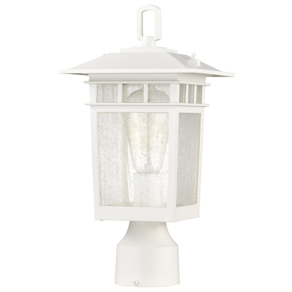 Cove Neck Collection Outdoor Medium 14 inch Post Light Pole Lantern; White Finish with Clear Seeded
