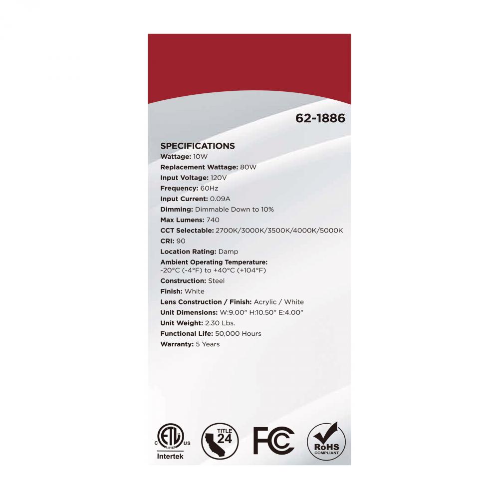 The SATCO NUVO 62-1886 Crispo Wall Sconce in All White delivers sleek, modern lighting with 5 CCT selectable technology (2700K–5000K) and 90 CRI illumination for vibrant color rendering. This 10-watt fixture replaces 80W incandescent lighting, offering e