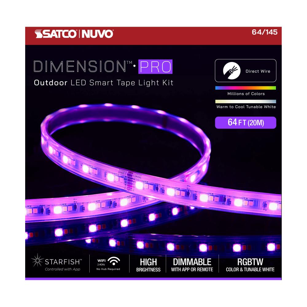 Dimension Pro; Tape Light strip; 64 ft.; Hi-Output; RGB plus Tunable White; J-Box connection; IP65; Starfish IOT Capable; RF Remote Included; White Finish