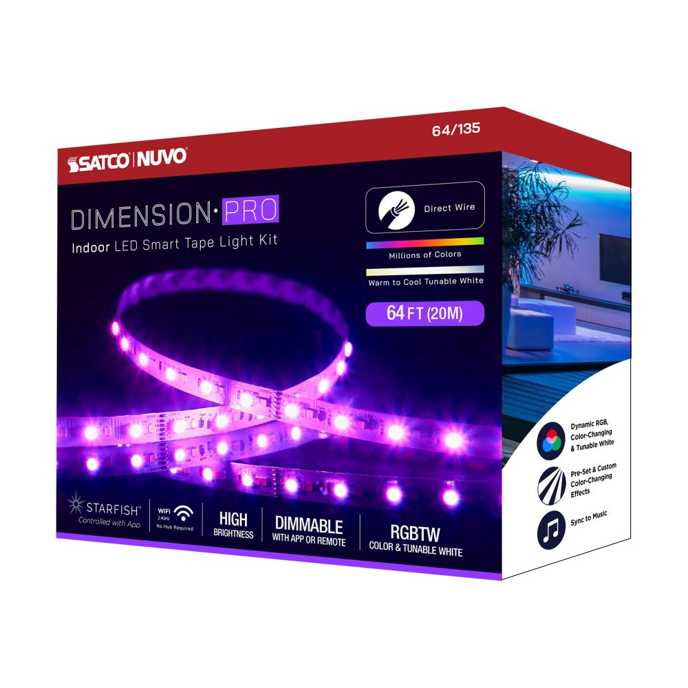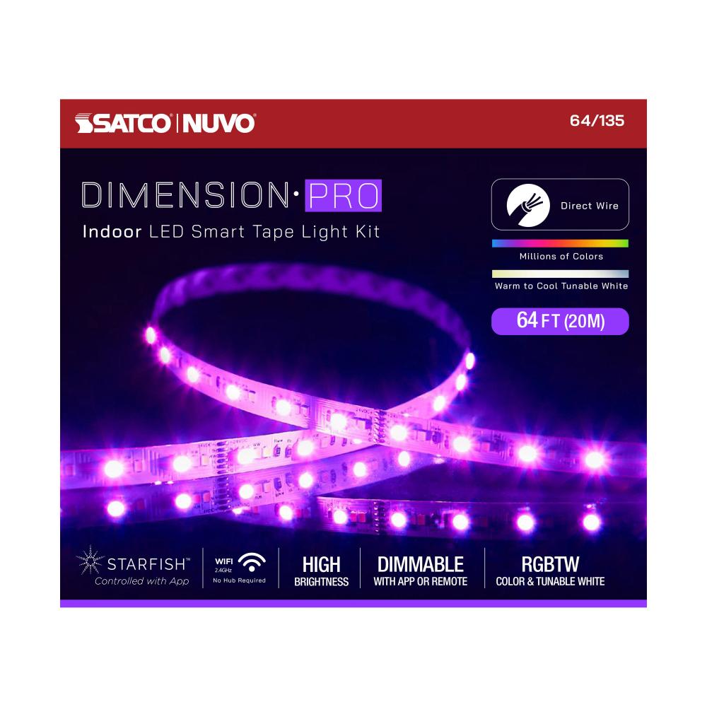 Dimension Pro; Tape Light strip; 64 ft.; Hi-Output; RGB plus Tunable White; J-Box connection; Starfish IOT Capable; IR Remote Included; White Finish