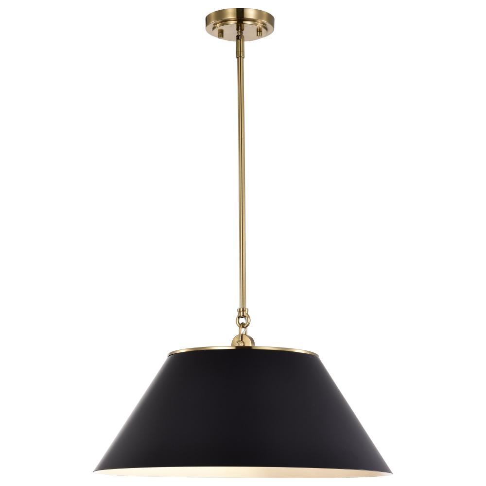 Dover; 3 Light; Large Pendant; Black with Vintage Brass