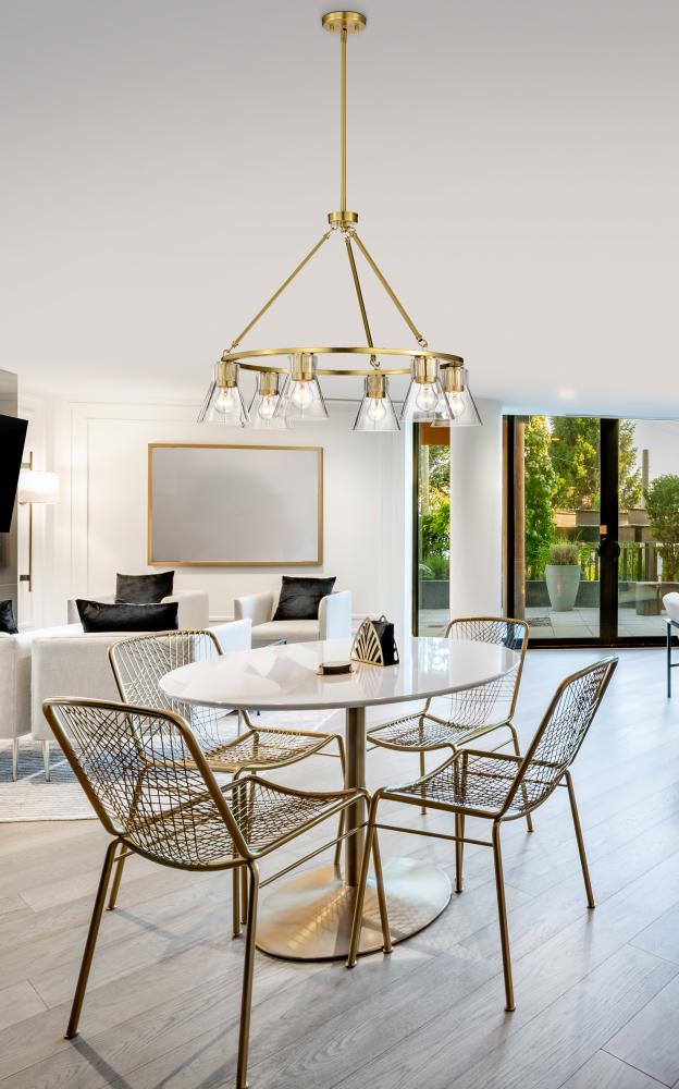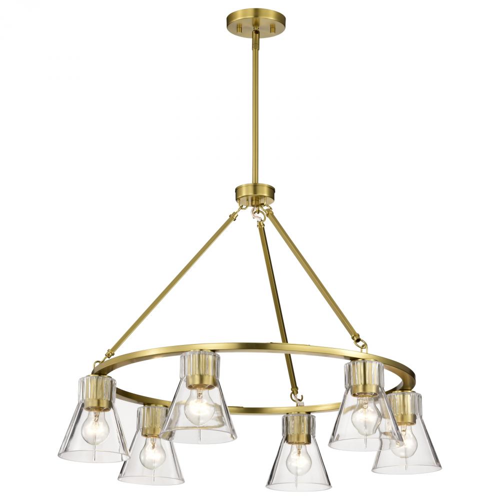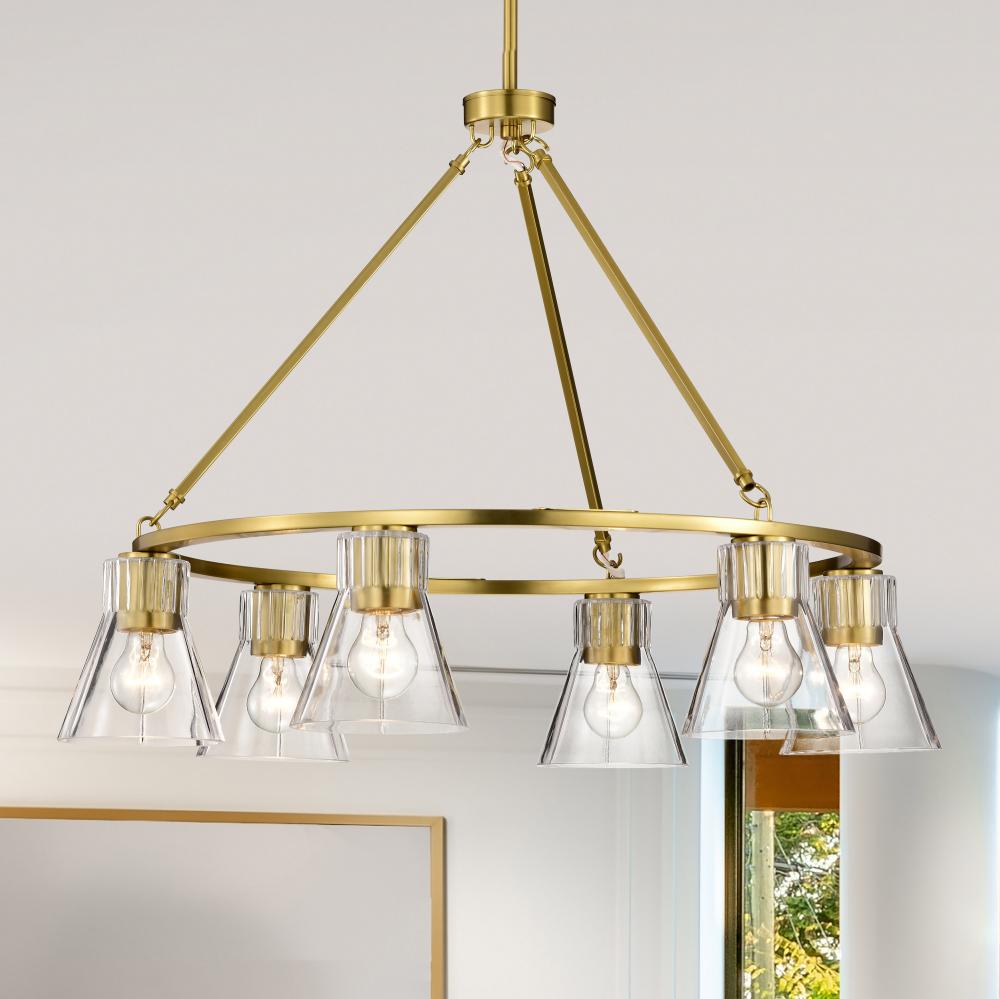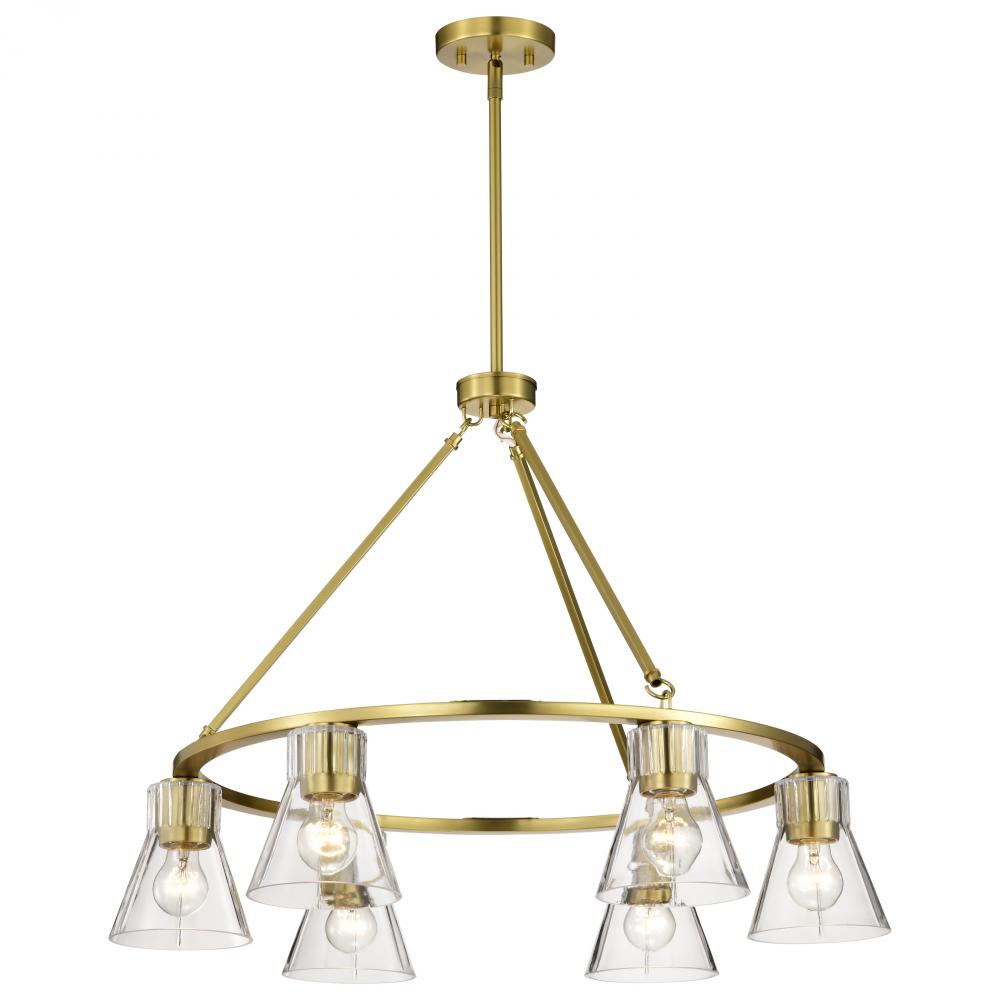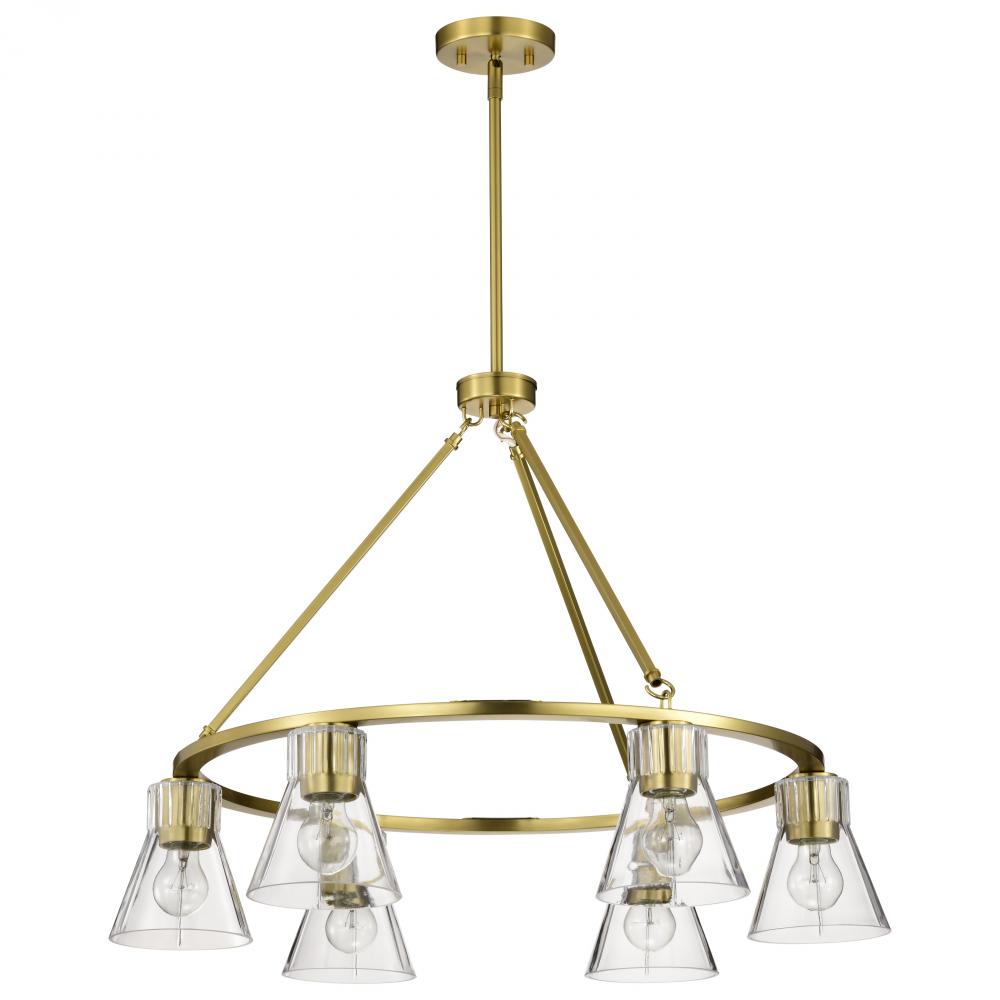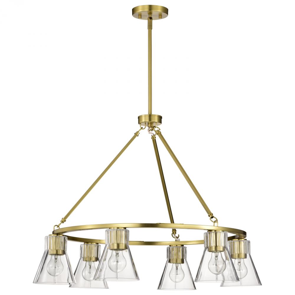 Gianna; 6 Light Chandelier; Vintage Brass Finish; Clear Glass