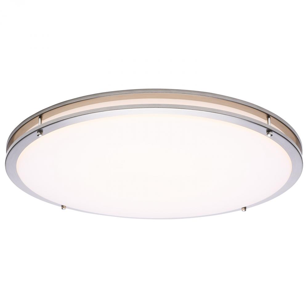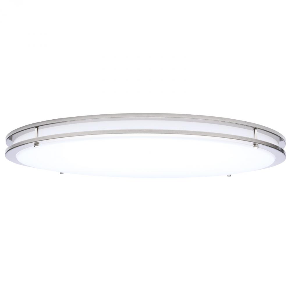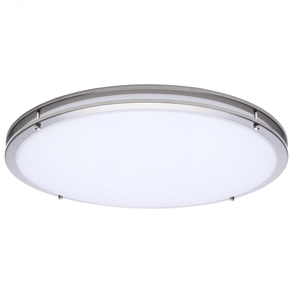 The SATCO NUVO 62-1878 Glamour 24-inch Round Flush Mount in Brushed Nickel delivers sleek, modern lighting with 5 CCT selectable technology (2700K–5000K) and 90 CRI illumination for enhanced color rendering. This 39-watt fixture replaces 250W incandescen