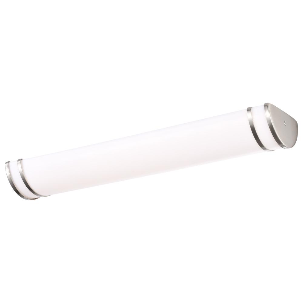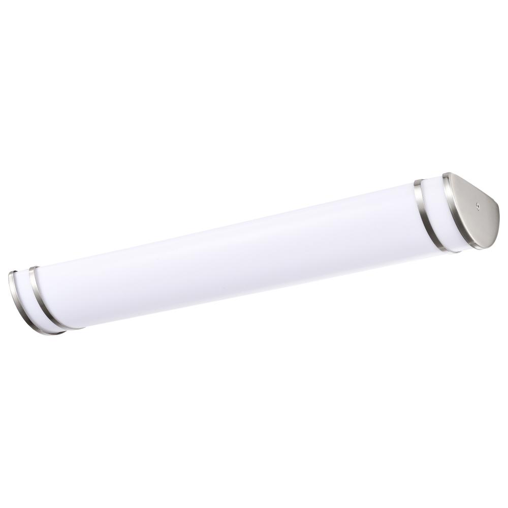 The Glamour 62-1631 26-watt, 25-inch vanity fixture is a sleek lighting solution for the home. Illuminate hallways, bathrooms, or office spaces with this dimmable vanity fixture in a brushed nickel finish. With ColorQuick technology, the simple, integrated