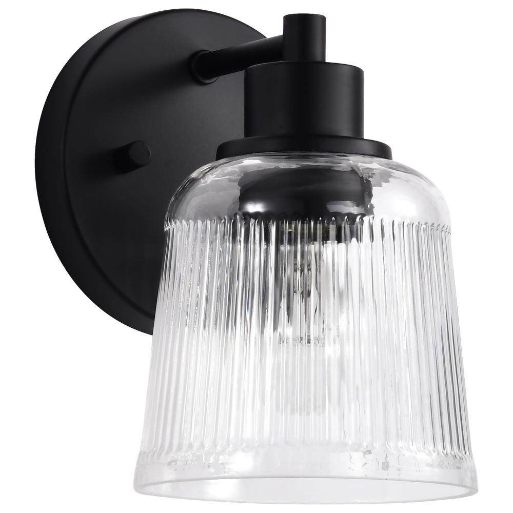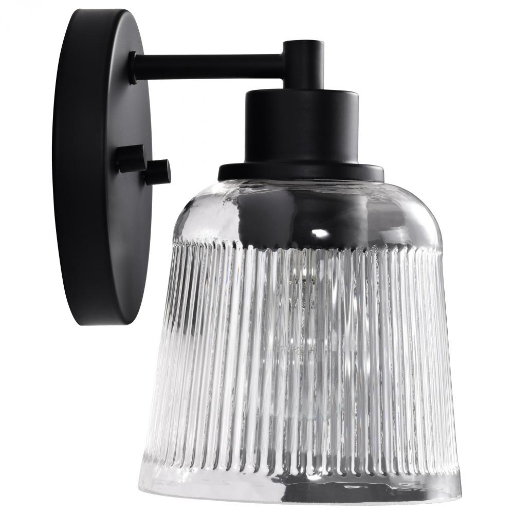 Grayson; 1 Light Vanity; Matte Black Finish; Clear Ribbed Glass