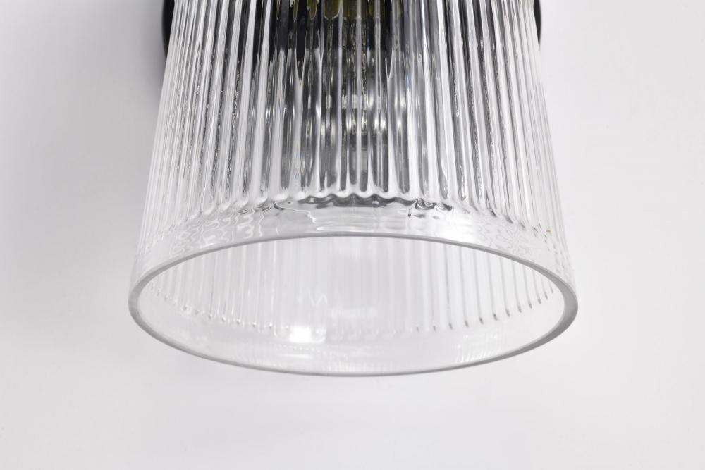 Finished in Matte Black with Clear Ribbed Glass