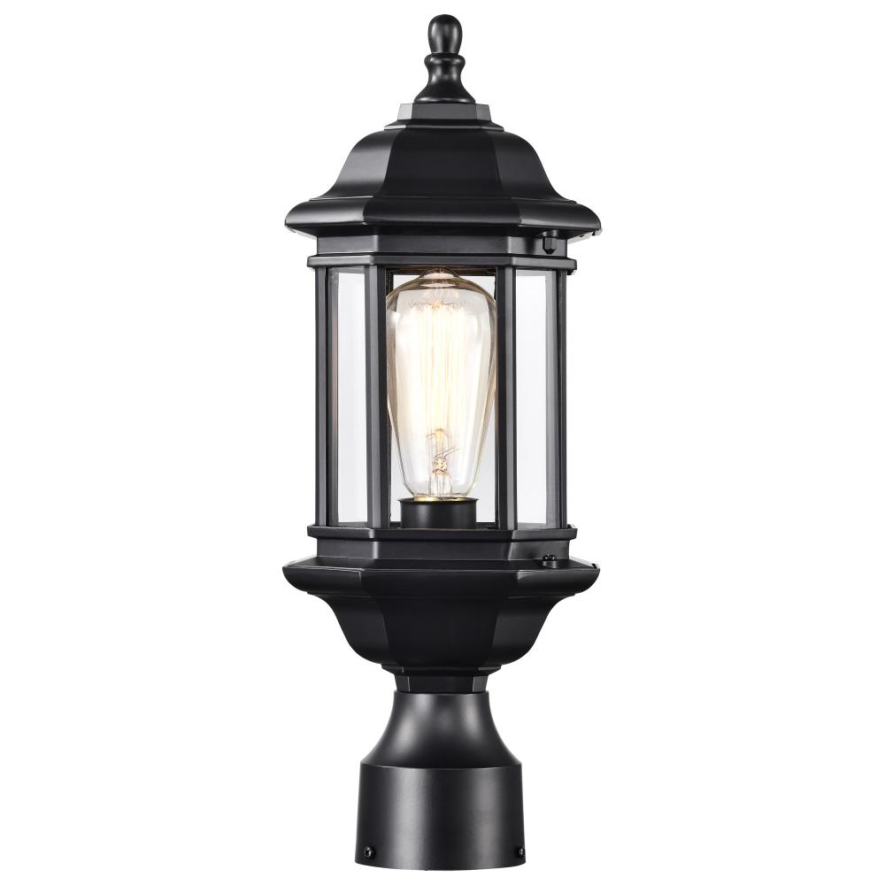 Hopkins Outdoor Collection 16 inch Small Post Light Pole Lantern; Matte Black Finish with Clear Glass