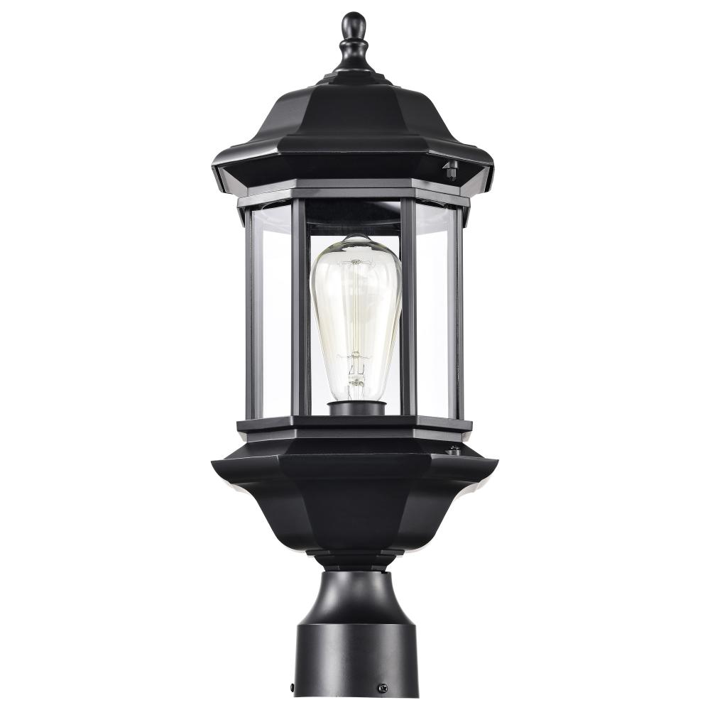 Hopkins Outdoor Collection 18.5 inch Large Post Light Pole Lantern; Matte Black Finish with Clear Glass