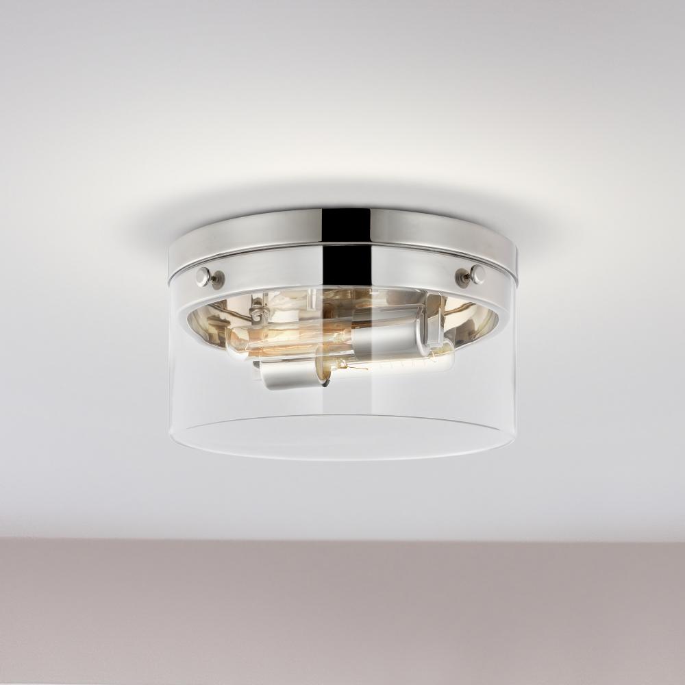Intersection; Small Flush Mount Fixture; Polished Nickel with Clear Glass; Polished Nickel Finish