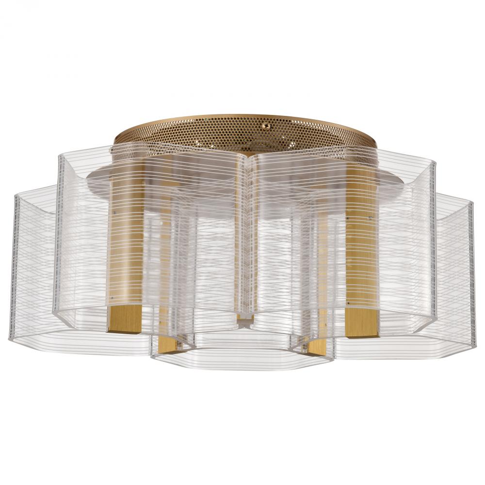 Kenzo; LED 5 Light Flush Mount; Vintage Brass Finish; Light Guide Panel