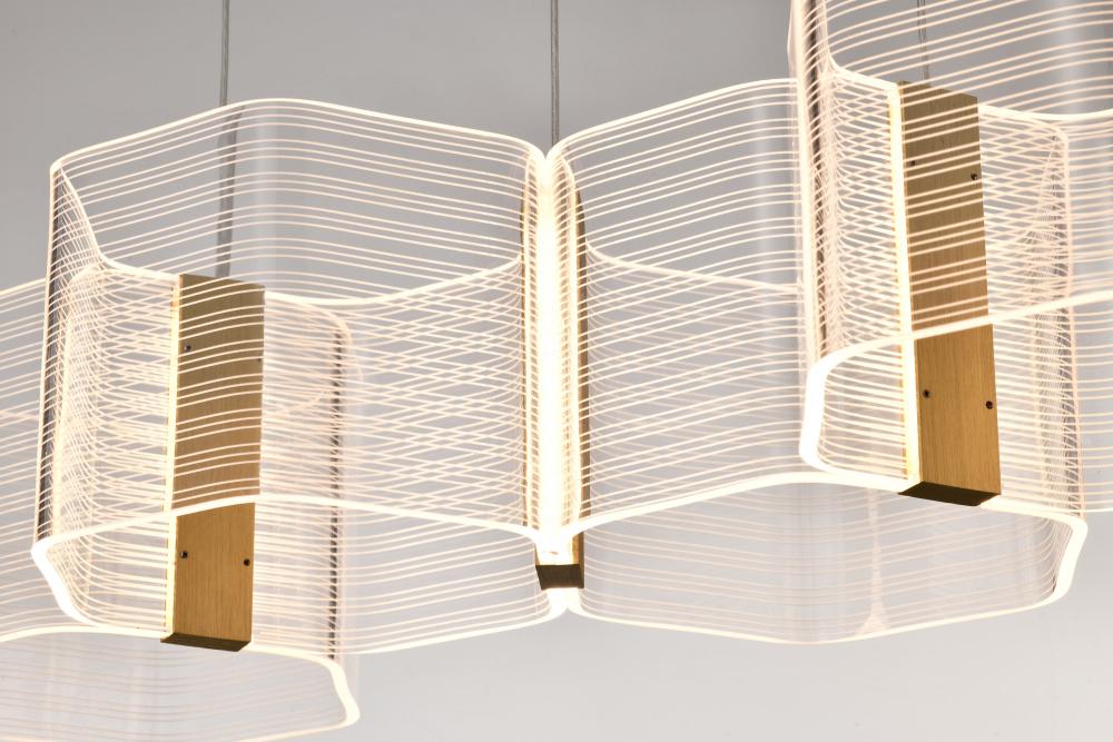 Unveil the art of Modern design with the Kenzo Collection, where bold geometric styling meets sculptural elegance. The parallel lines create a dynamic visual effect, blending symmetry with artistry for a look that captivates. Edge-lit acrylic shades provid