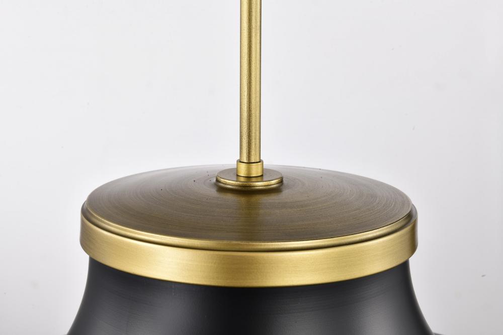 Lafayette 3 Light Pendant; 18 Inches; Matte Black Finish with Natural Brass Accents and White Opal Glass