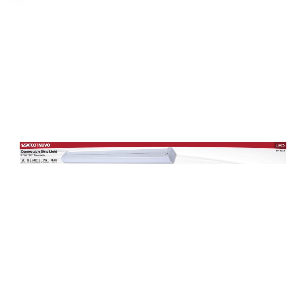 LED 2 Foot Connectable Strip Light; 20 Watts; 27K/30K/35K/40K/50K CCT Selectable; White Finish; 120 Volt
