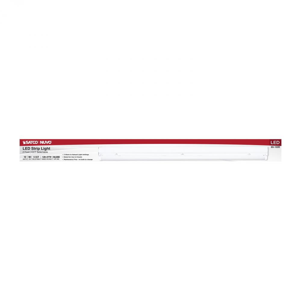 LED 2 Foot Strip Light; 10 Watts; 27K/30K/35K/40K/50K CCT Selectable; White Finish; 120-277 Volt