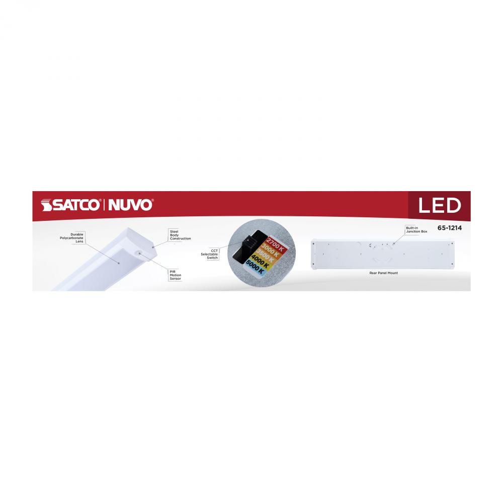 SATCO NUVO's 65-1214 2-foot LED wrap fixture with an integrated PIR sensor delivers exceptional lighting performance with a 90 CRI, ensuring enhanced color accuracy. Featuring 5 CCT selectable technology, it allows for customizable color temperatures w