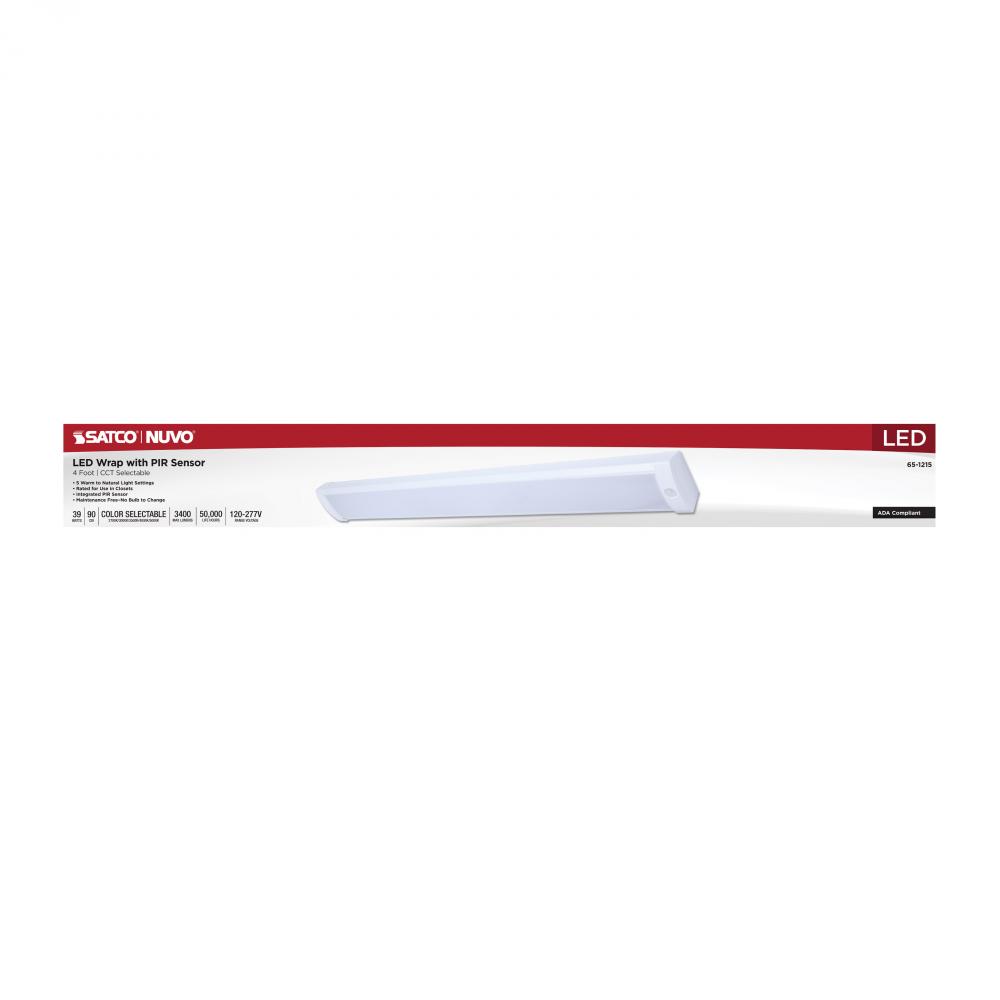 SATCO NUVO's 65-1215 4-foot LED wrap fixture with an integrated PIR sensor delivers exceptional lighting performance with a 90 CRI, ensuring enhanced color accuracy. Featuring 5 CCT selectable technology, it allows for customizable color temperatures w