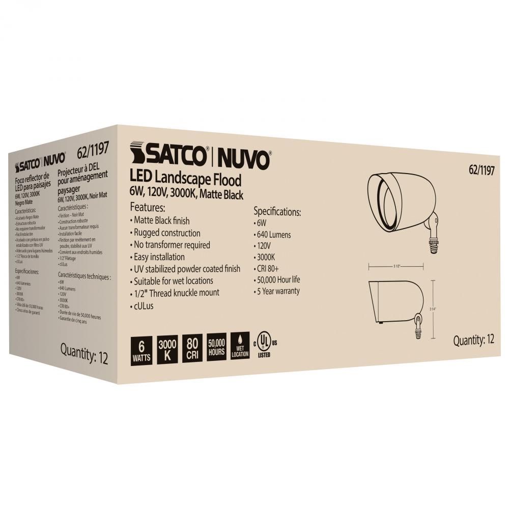 LED Landscape Flood; 9 Watt; Matte Black Finish; 3000K; 120 Volt