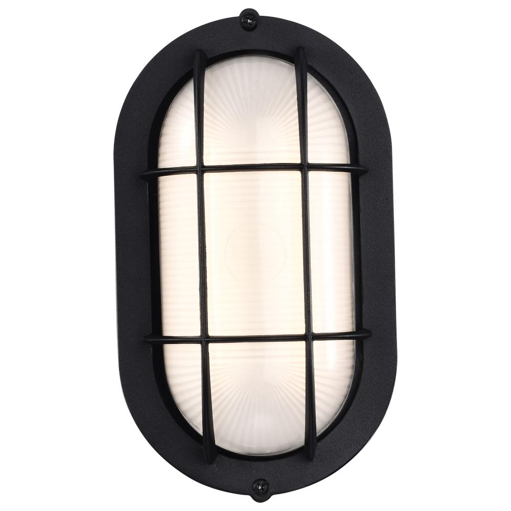LED Small Oval Bulk Head Fixture; Black Finish with White Glass