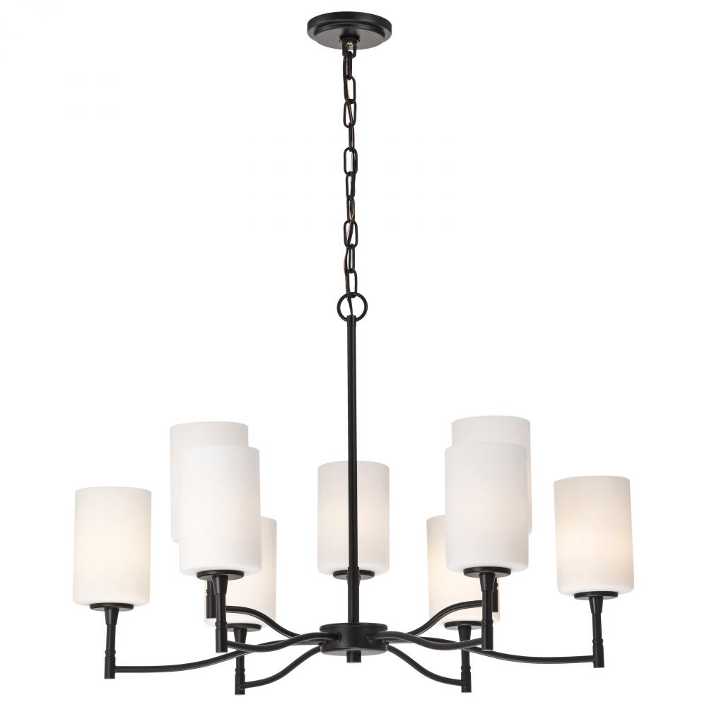 Liam; 9 Light Chandelier; Matte Black; White Opal Glass