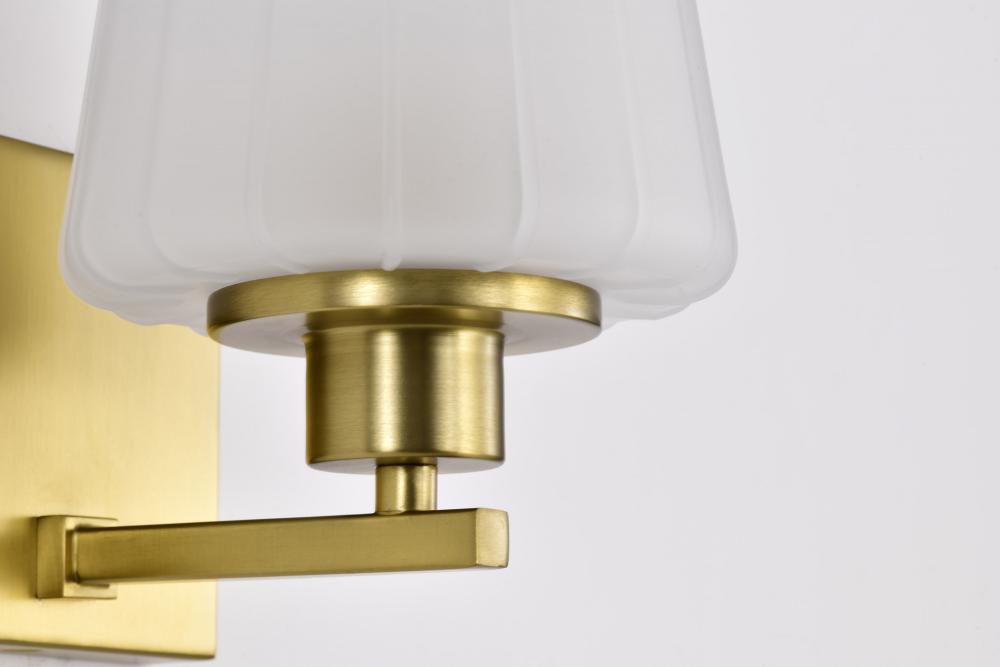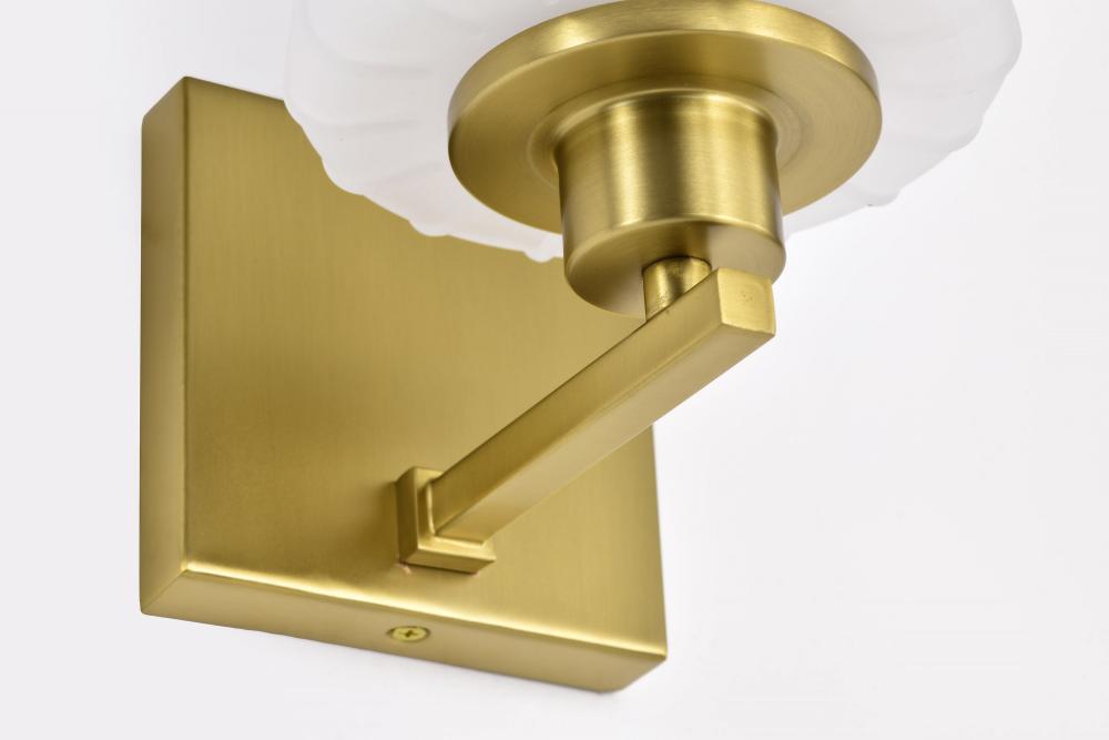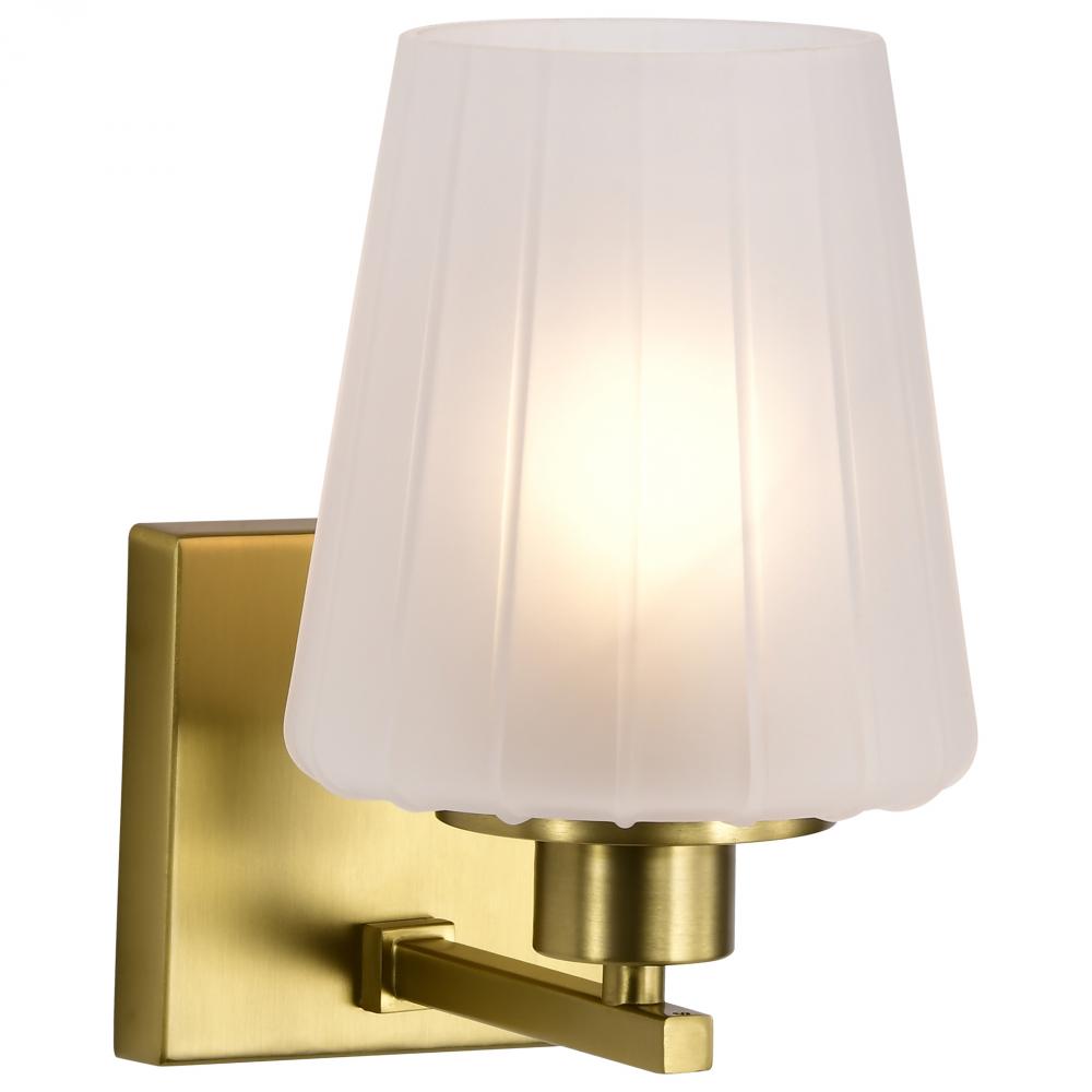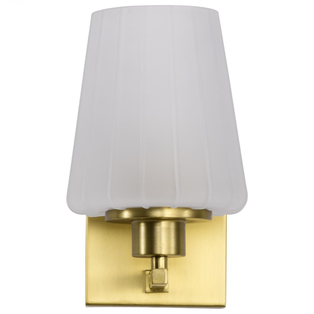 Lune; 1 Light Vanity; Vintage Brass Finish; Etched White Glass