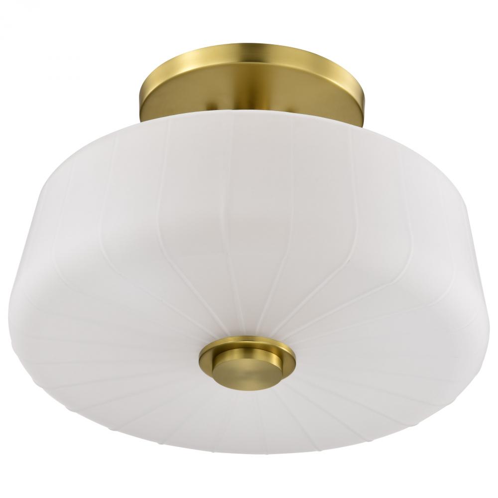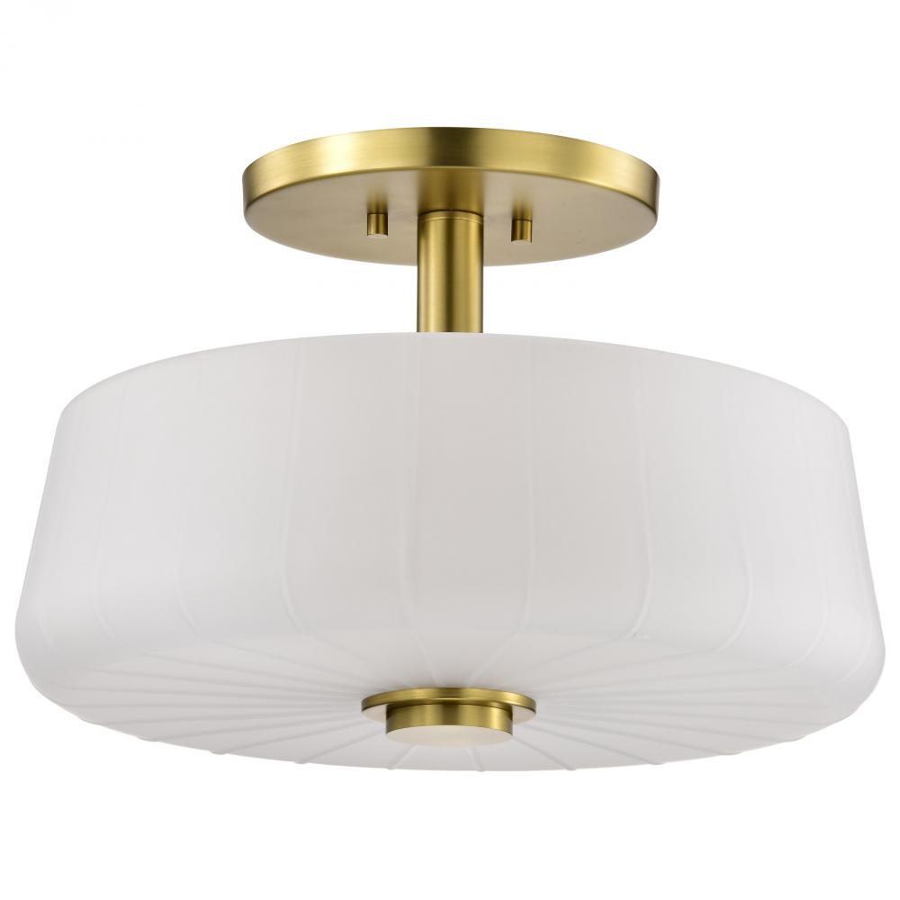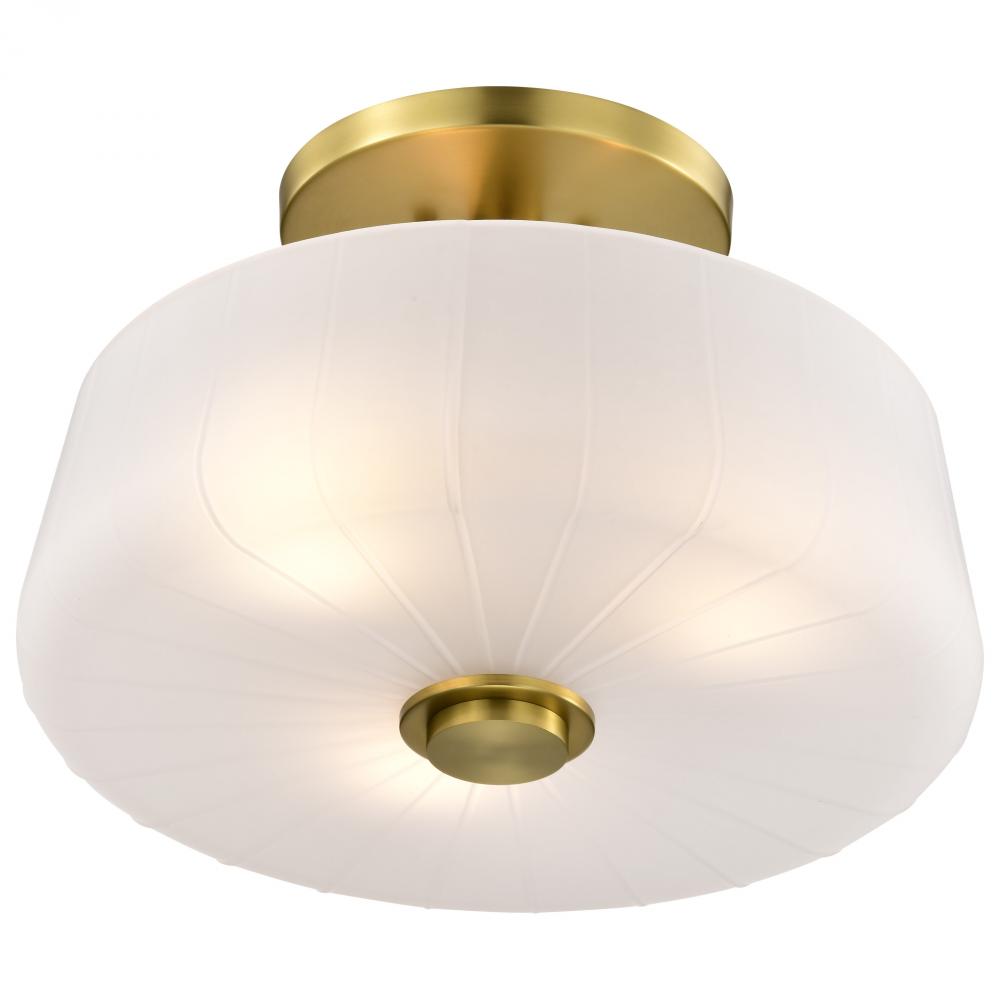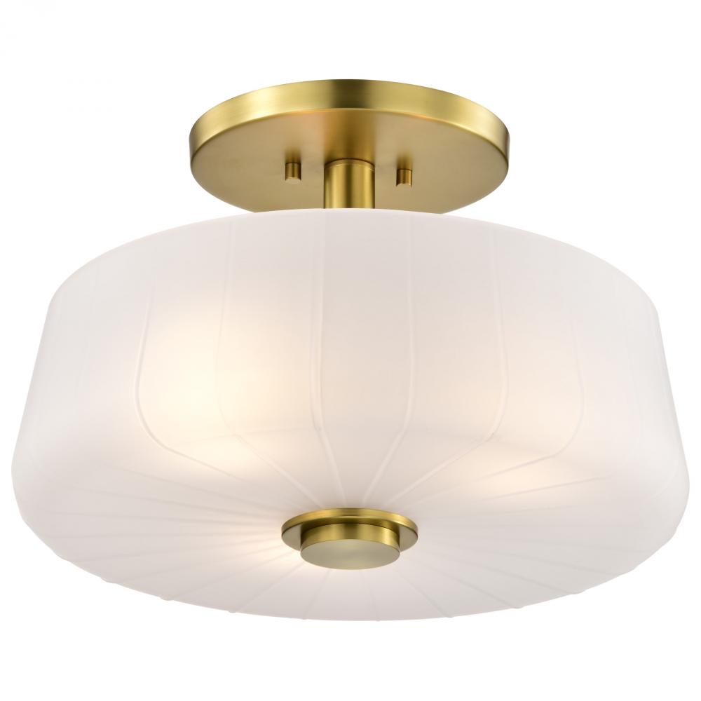Lune; 3 Light Semi-Flush; Vintage Brass Finish; Etched White Glass